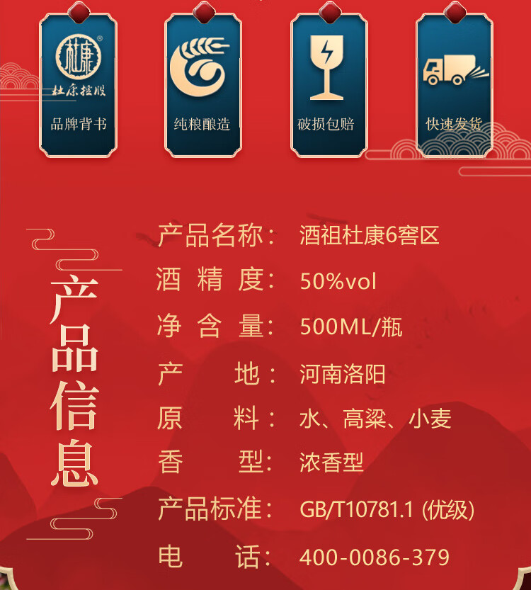 50°酒祖杜康-6窖区 500ml/瓶(yh)