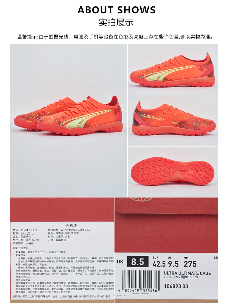 SFS彪马Puma正品ULTRA ULTIMATE CAGE高端碎钉TF足球鞋106893-03