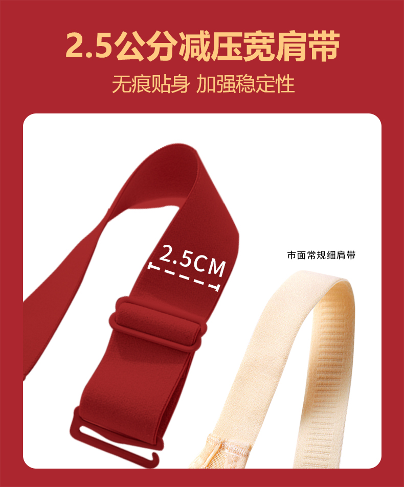 4.3公分减压宽肩带:解决了滑肩溜肩问题,无痕贴身增强稳定性,加大提拉性