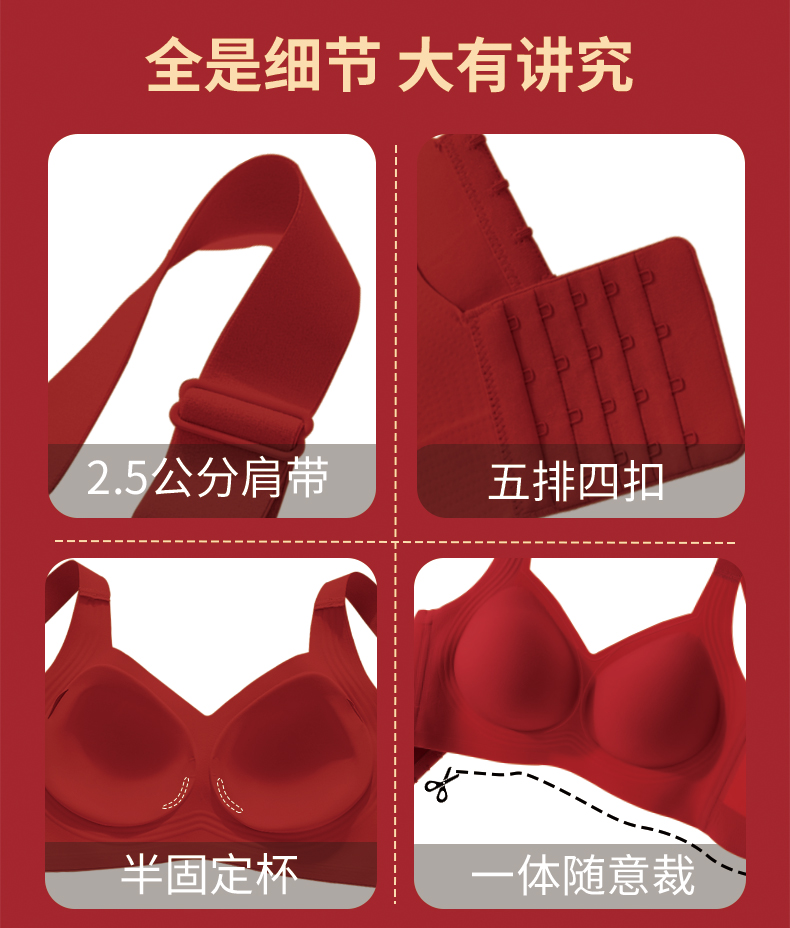 3.17公分高侧比:大部分女性的副乳是勒出来的,所以我们的内衣侧比加高17公分不勒腋下处、包裹性更