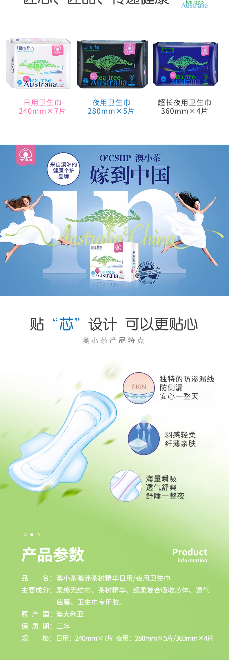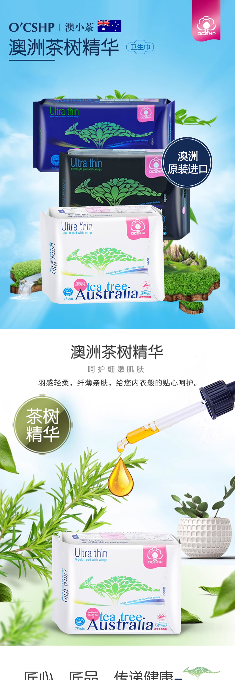 澳大利亚进口澳小茶澳洲茶树精华系列卫生巾