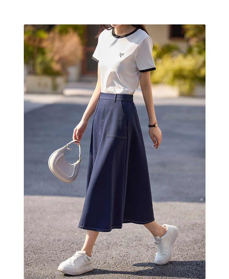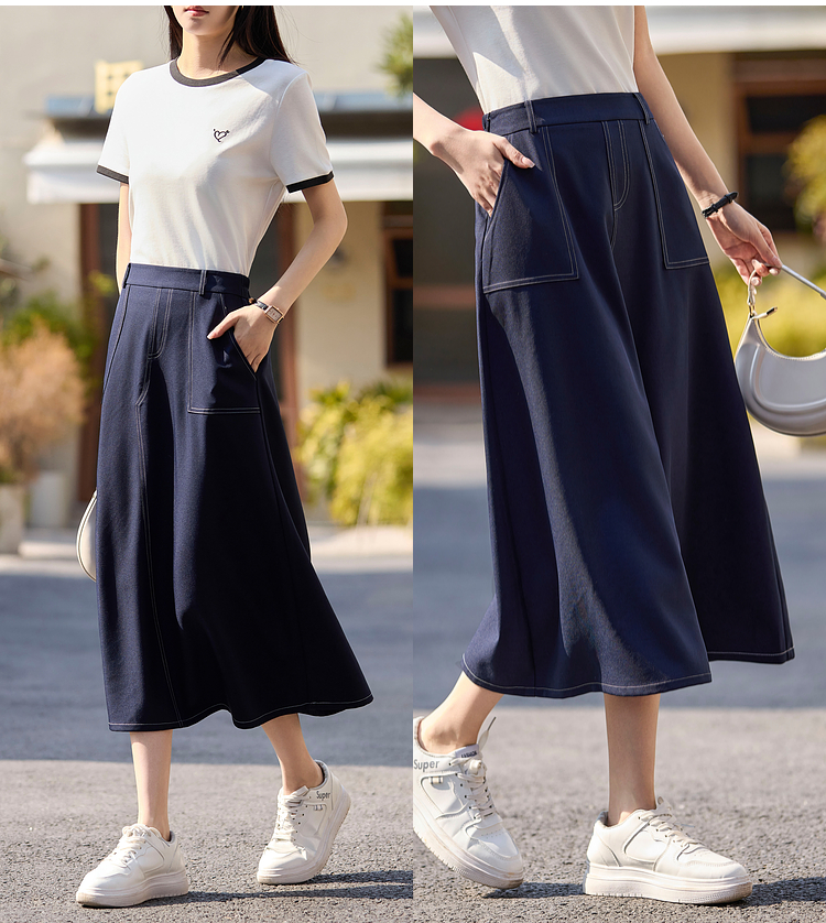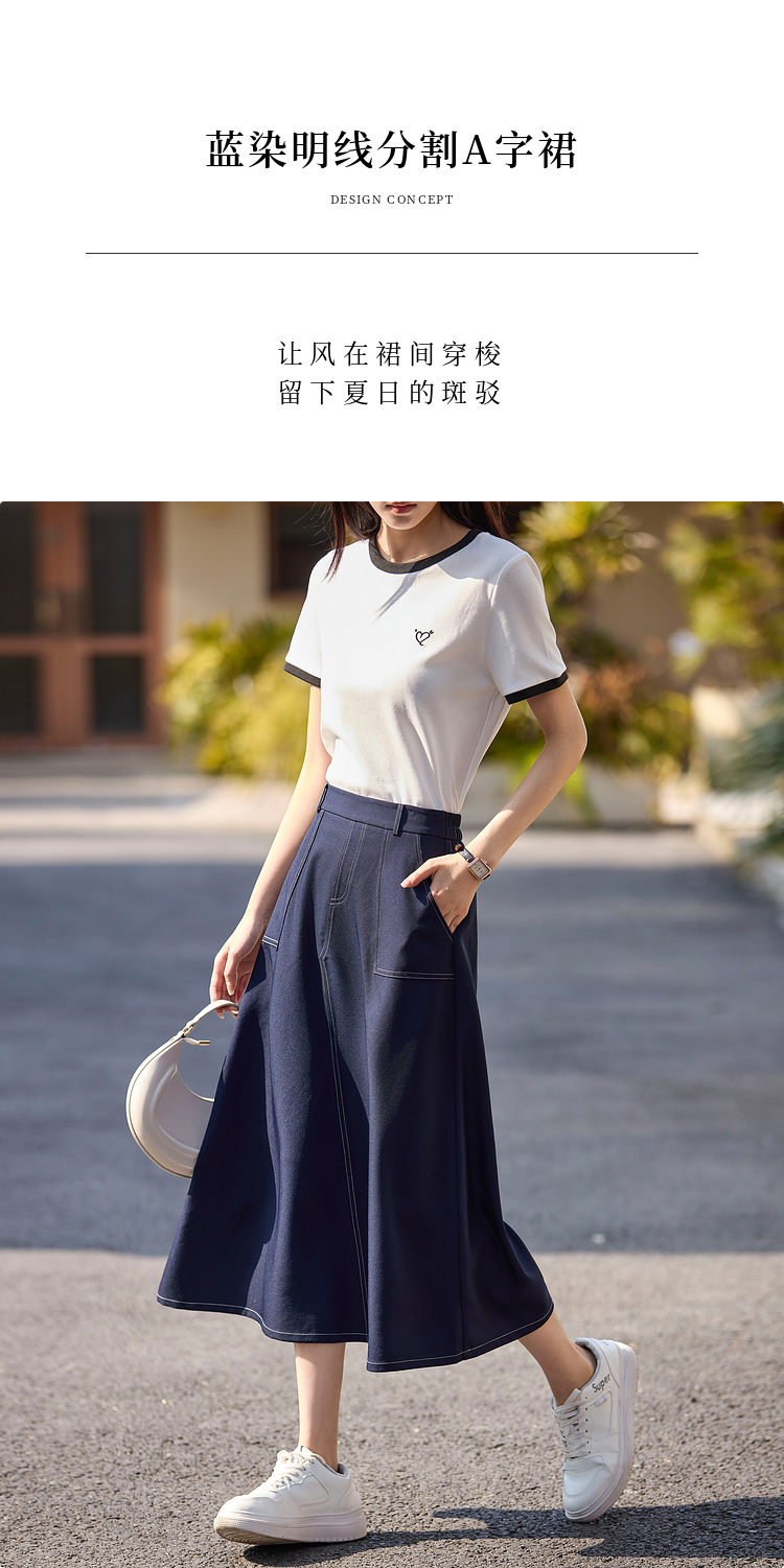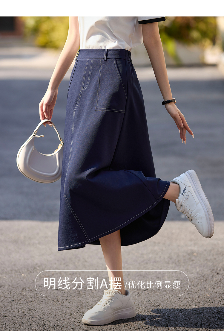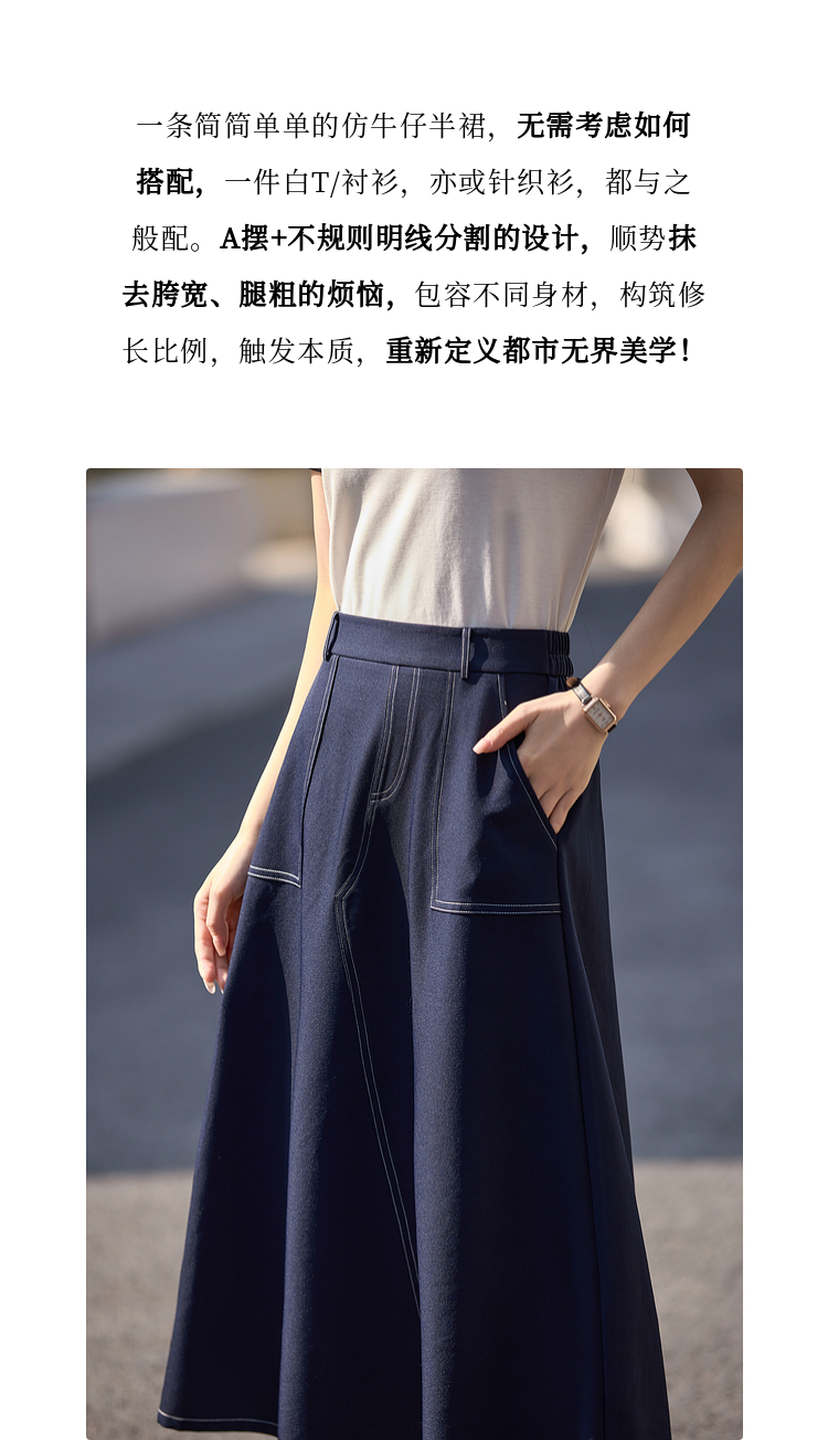 熙世界明线分割仿牛仔半身裙女2025夏季新款休闲工装风口袋a字裙