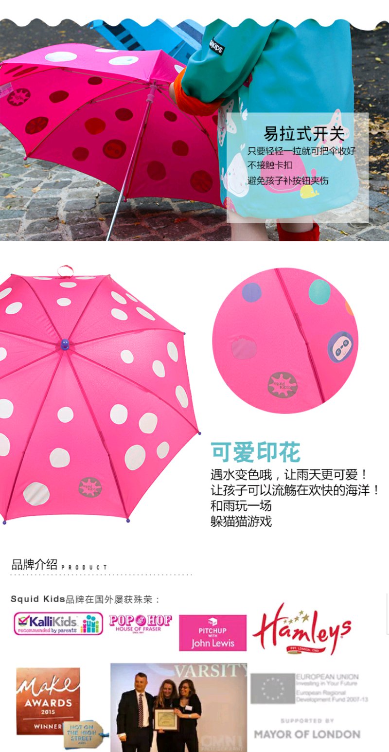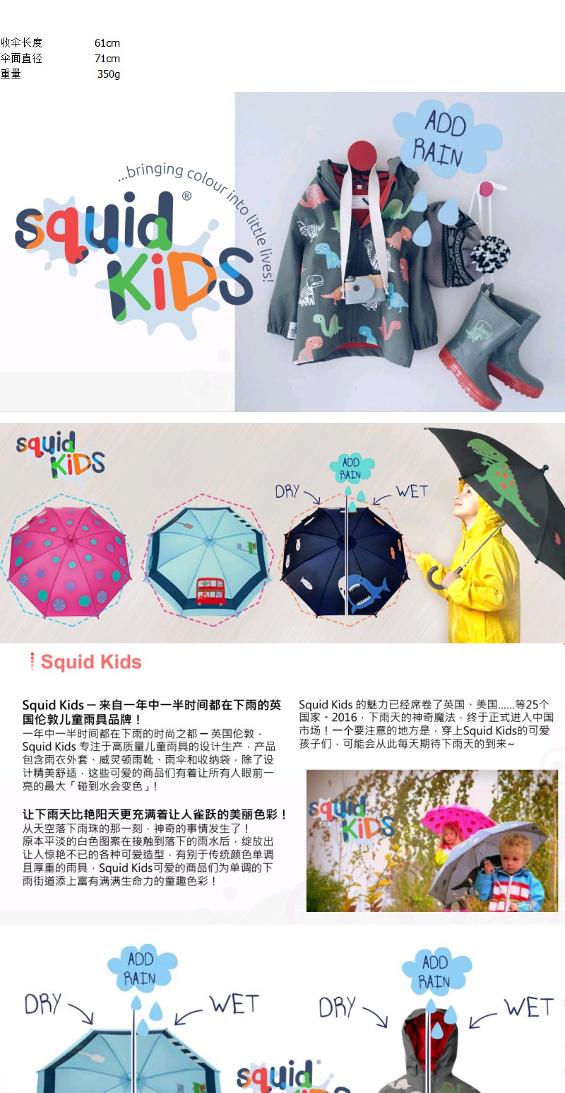 (超值)【夏日专惠】英国Squid Kids 宝宝幼儿园儿童 变色雨伞