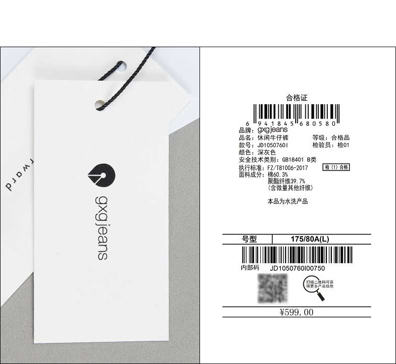 gxg.jeans牛仔裤男装 冬季热卖潮流水洗休闲长裤JD1050760I