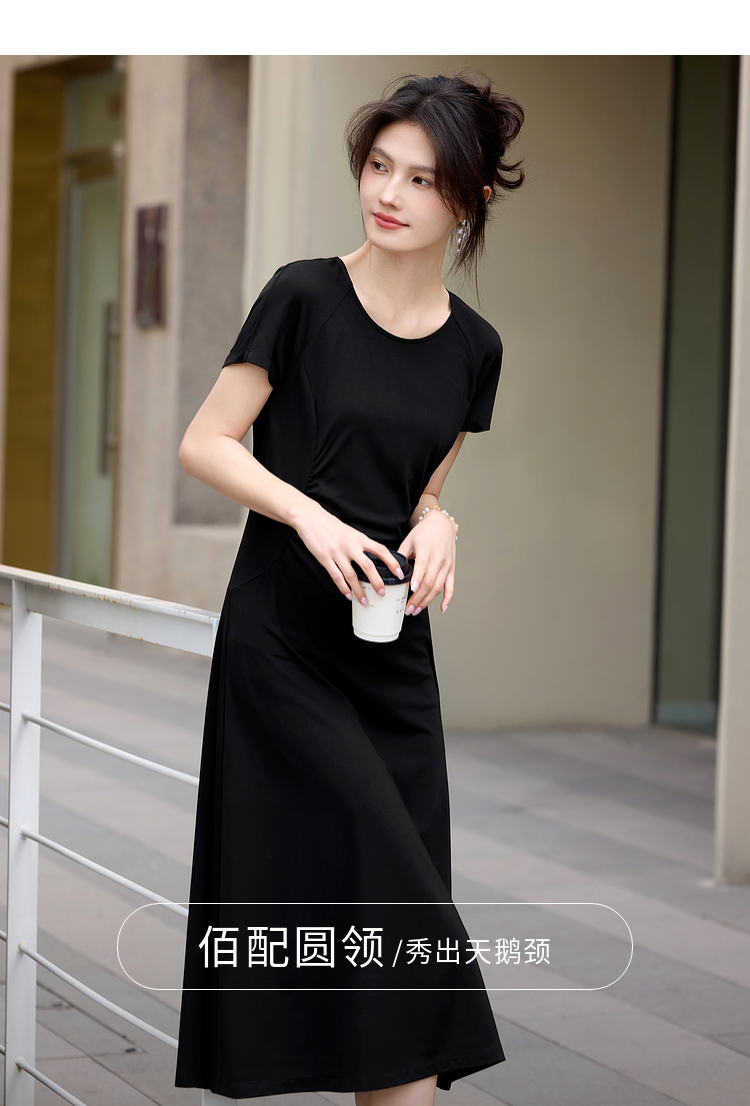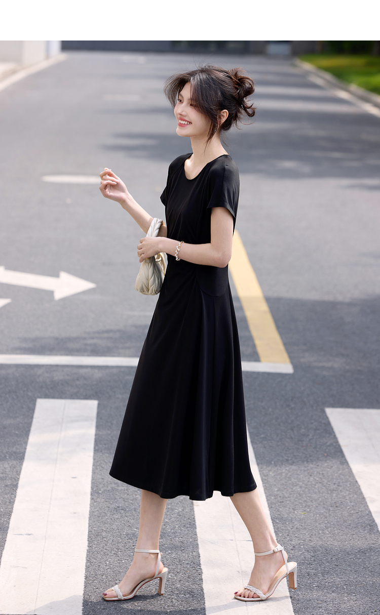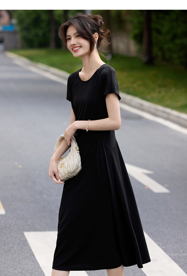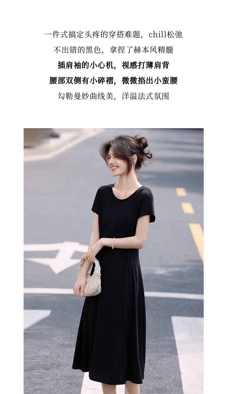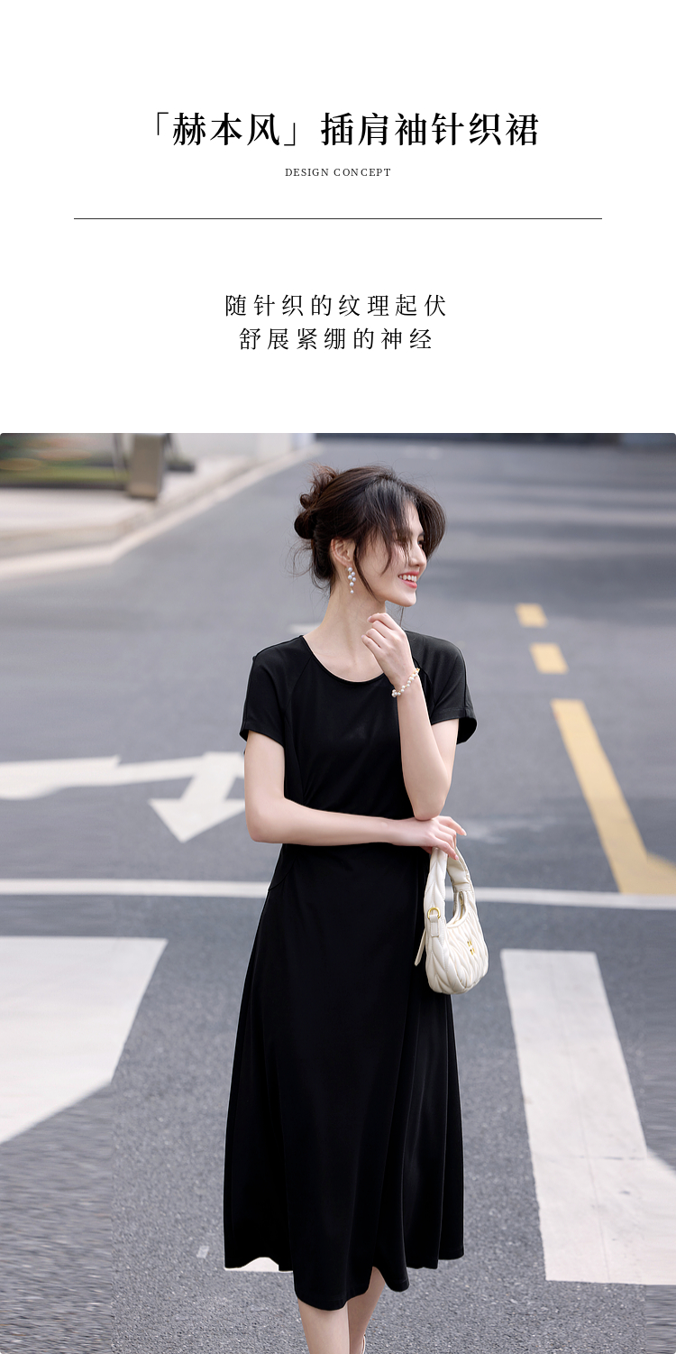 【周末秒杀】熙世界赫本风黑色连衣裙女收腰显瘦夏季针织冰丝T恤裙子2025新款