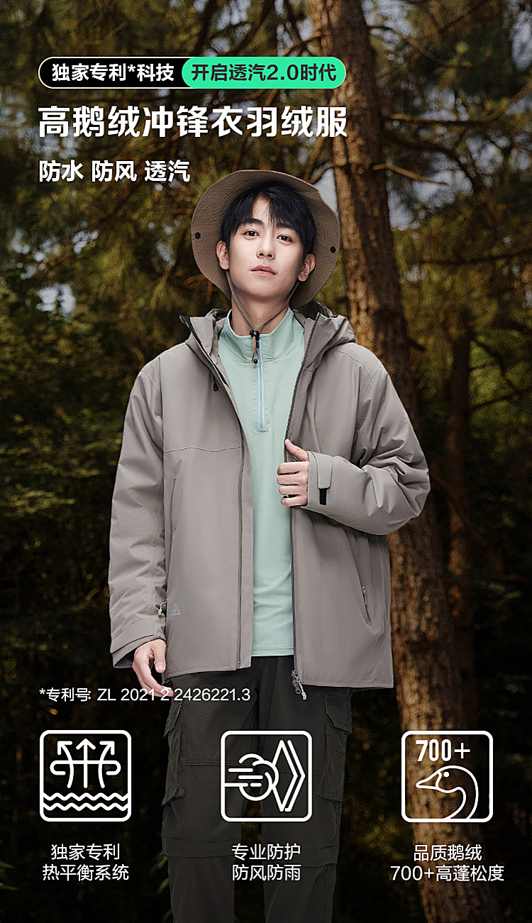 B30132403[鹅绒]波司登2023秋季新款户外保暖冲锋衣男士轻薄羽绒服