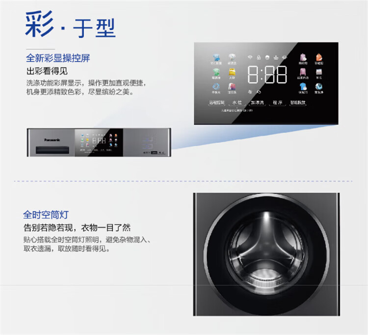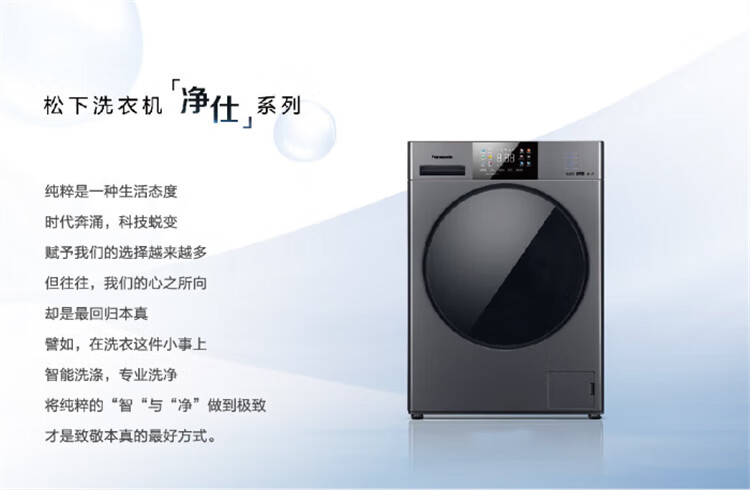 松下(Panasonic)XQG100-E17F全自动滚筒洗衣机10KG 高温除菌 泡沫净 羽绒洗 彩屏 悦目银