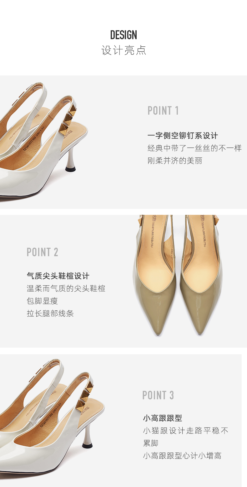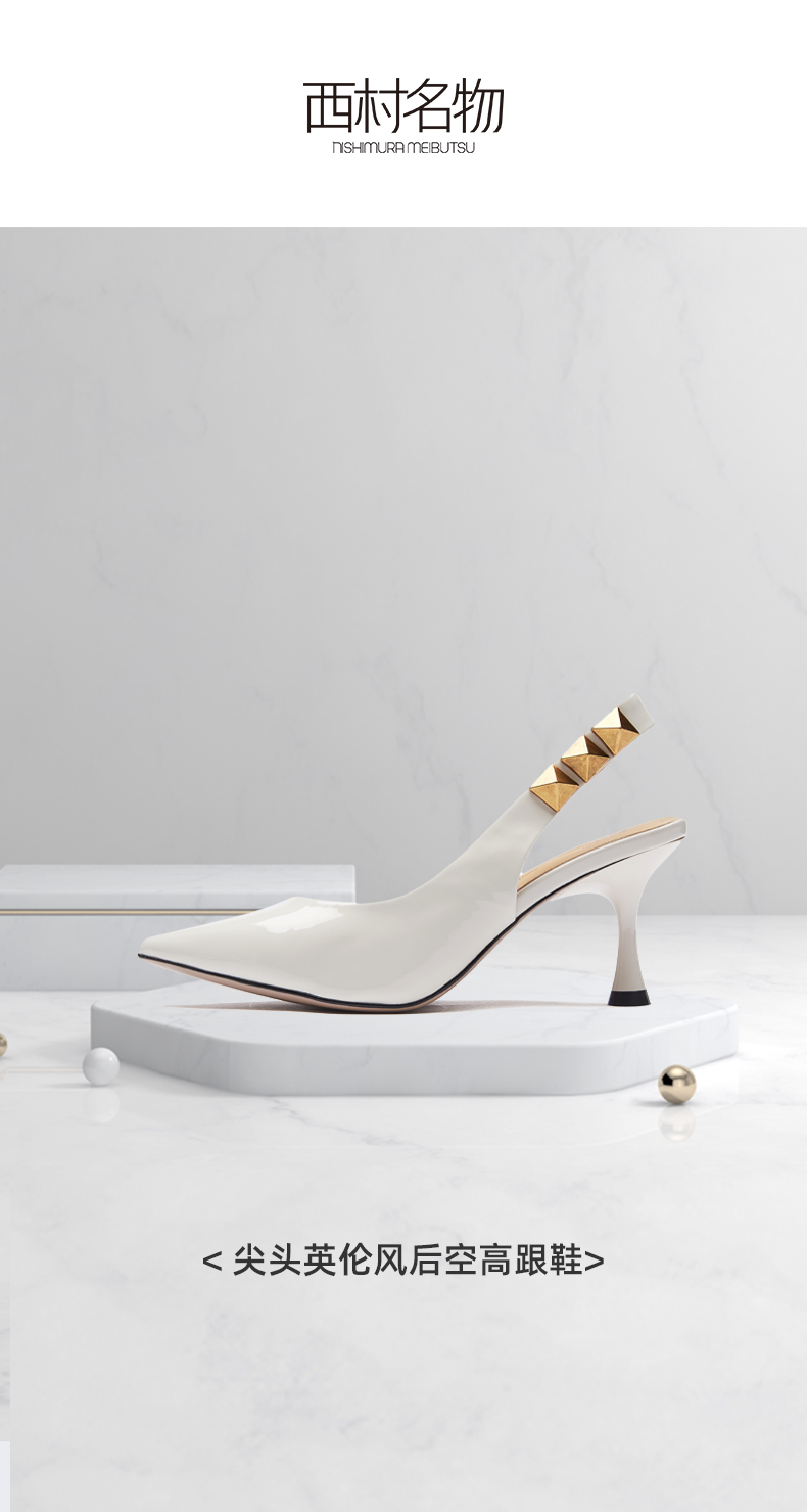 西村名物2021夏新款尖头凉鞋仙女风细跟女鞋包头后空高跟鞋15771