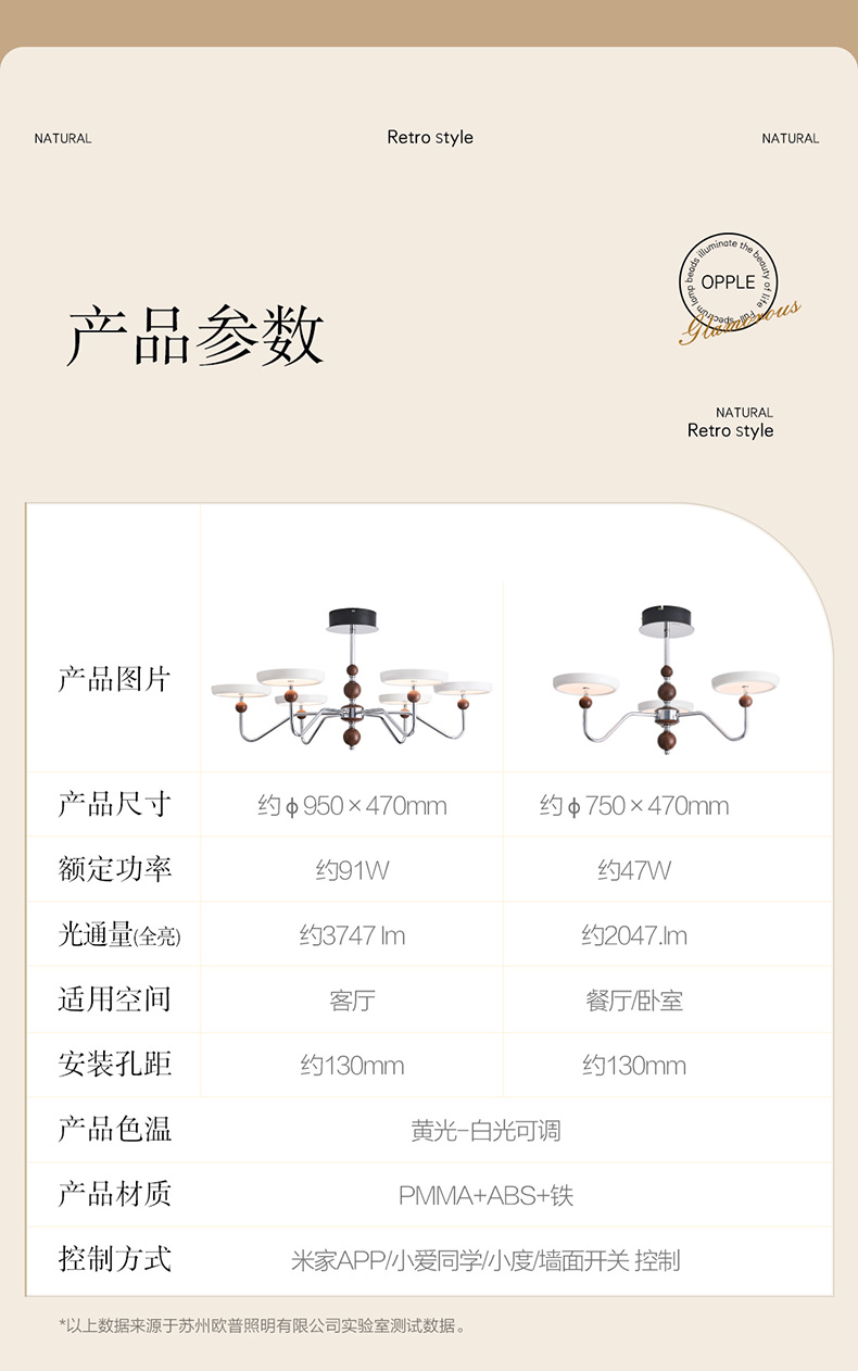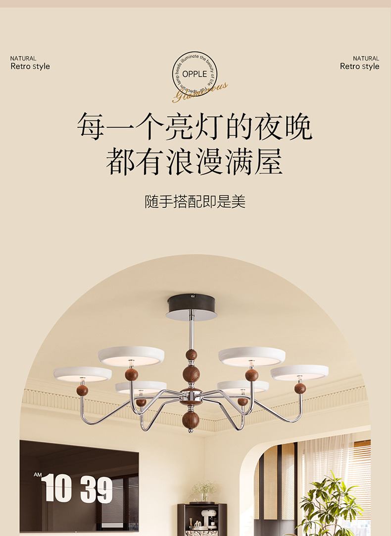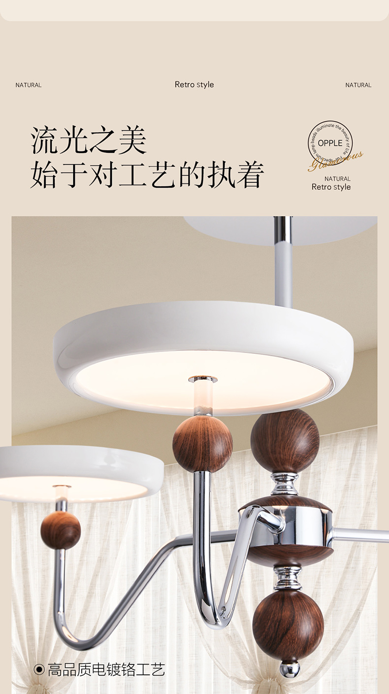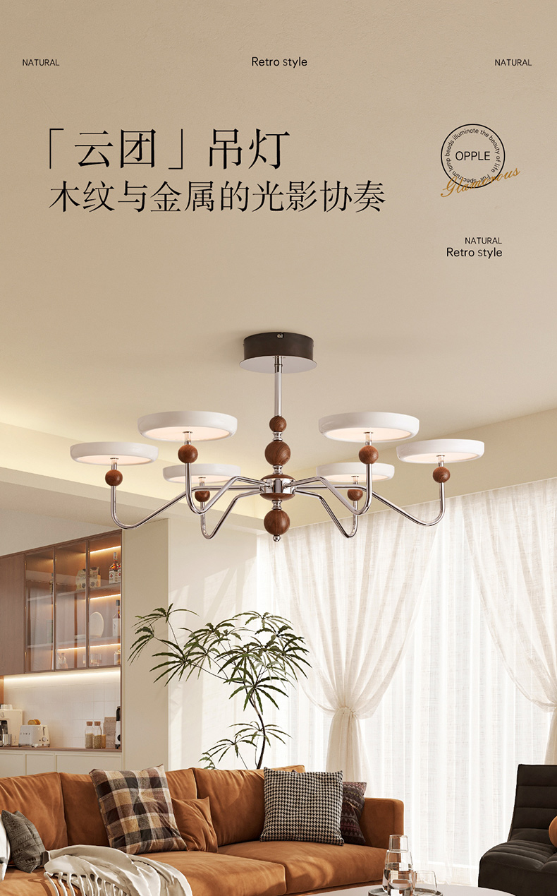 欧普(OPPLE)复古奶油风云团吊灯微棱镜全光谱侧发光护眼客厅中古风卧室智控