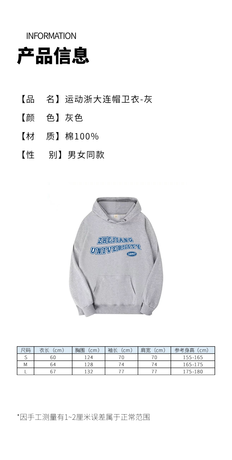【浙大文创】运动浙大连帽卫衣-灰色