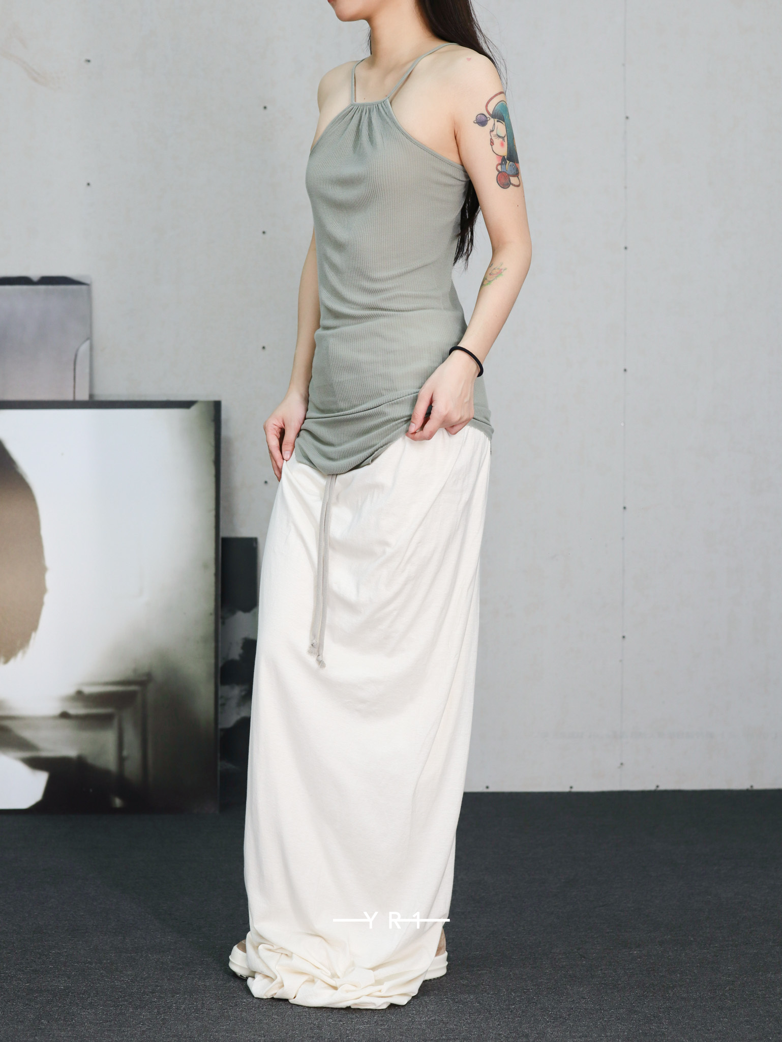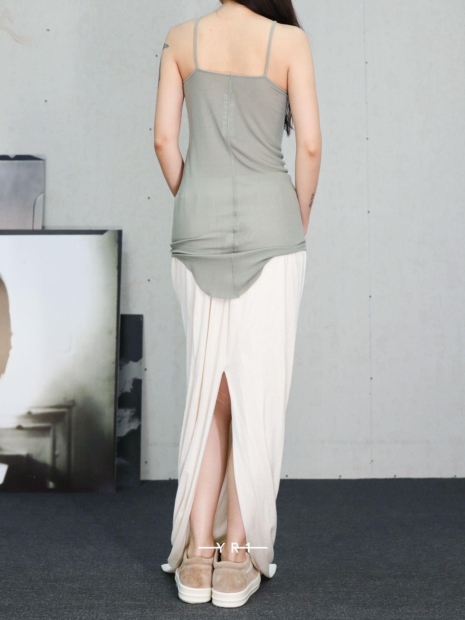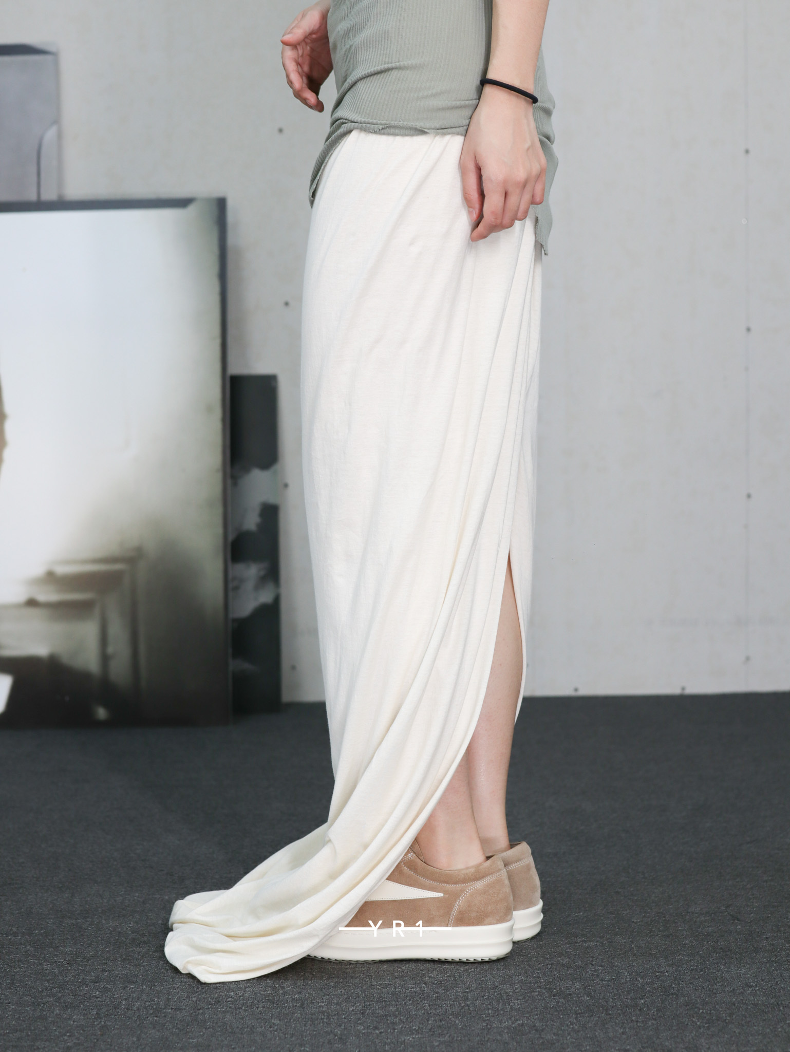 这款拉杆裙前部为全长,后部开至膝盖高度。