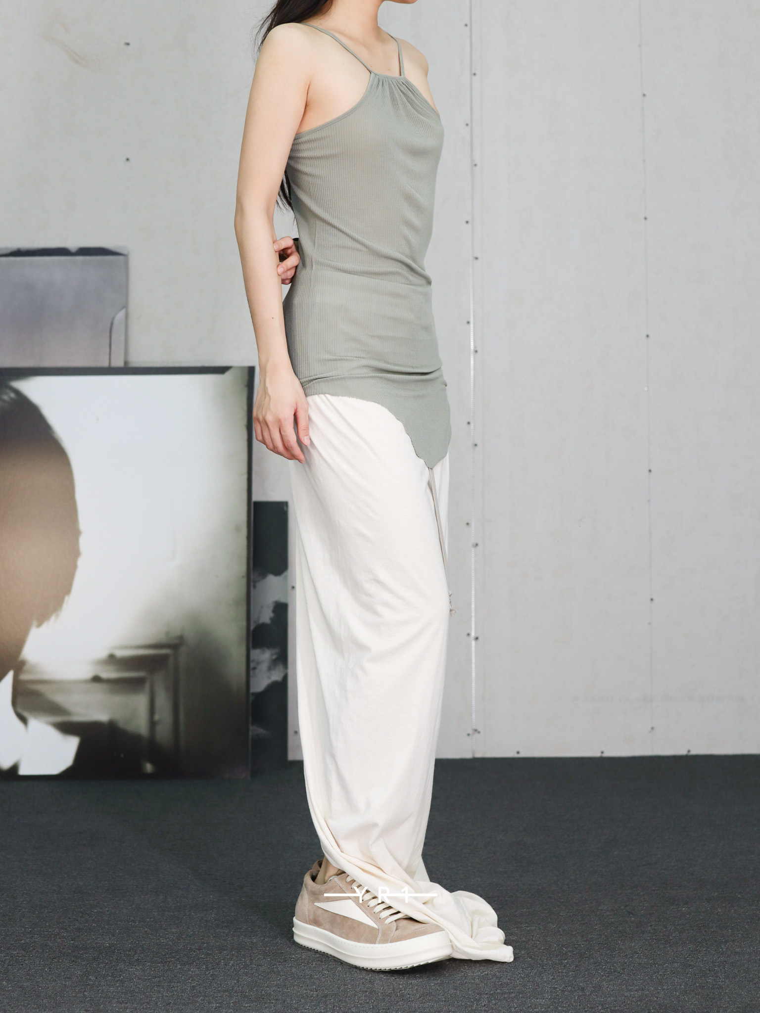 它有松紧腰带和抽绳,前侧有两个口袋。