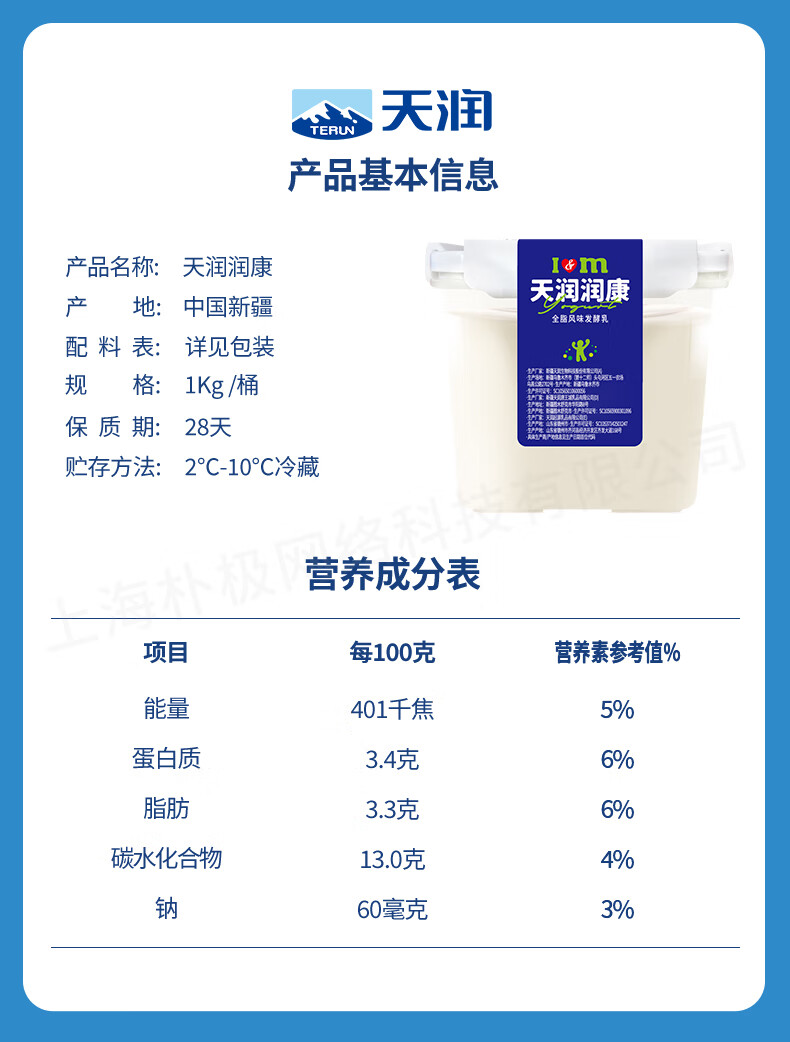 【分仓直发包邮】天润润康原味方桶1kg*2