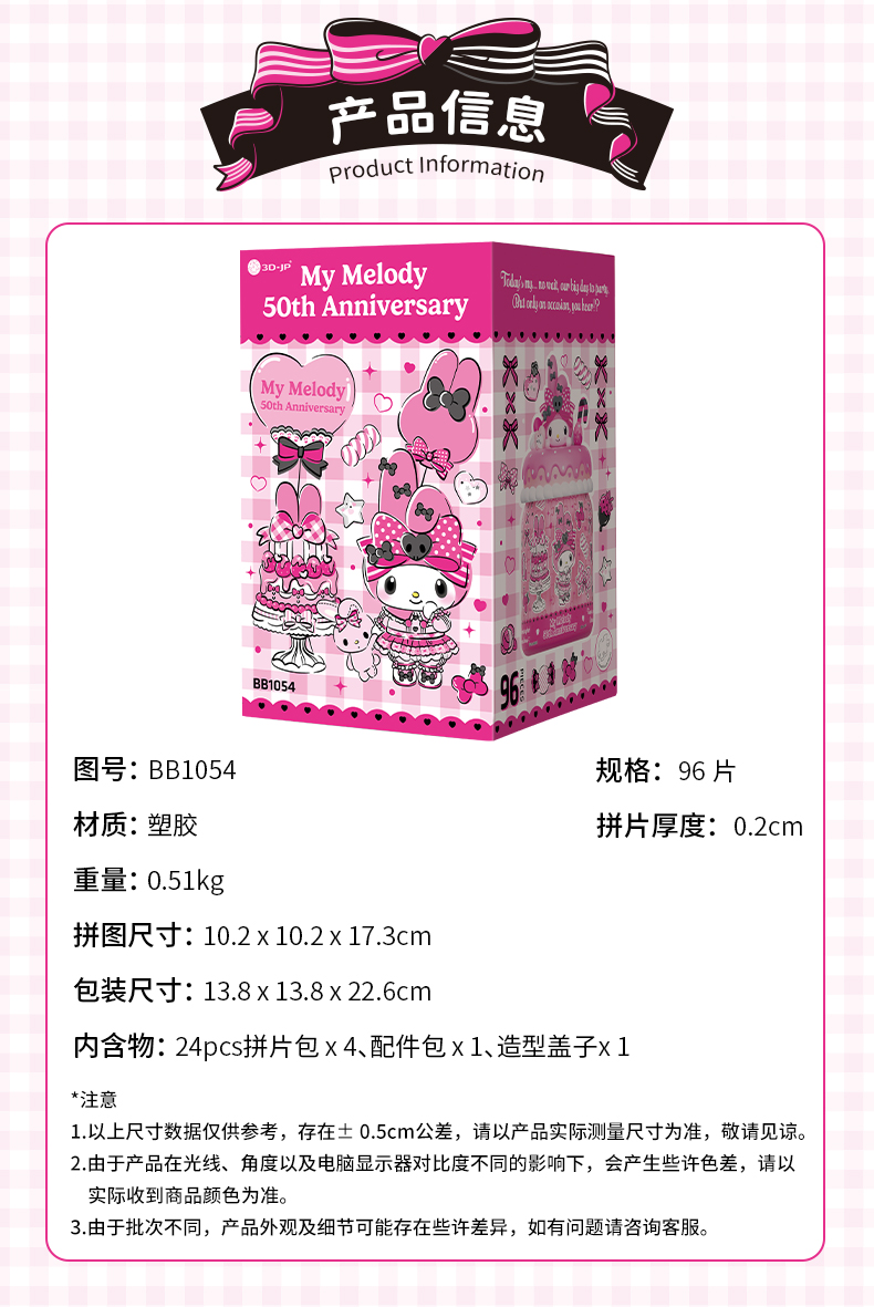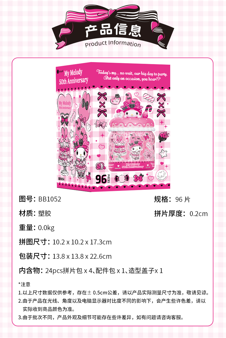 96片 收纳罐拼图 BB1054 Pink & Black Party-粉色舞会-三丽鸥家族系列My Melody