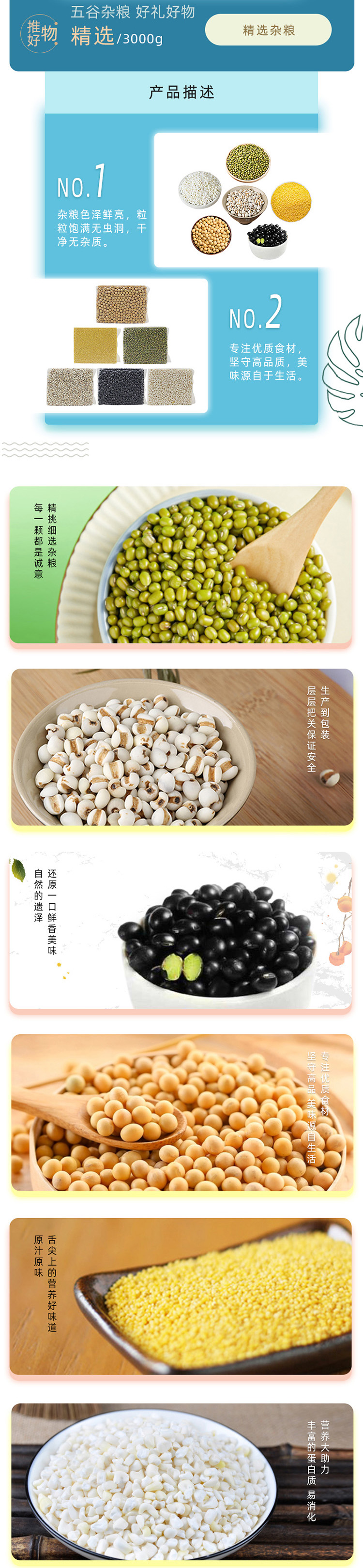 精选杂粮组合装(绿豆500克、黑豆500克、薏仁米500克、糯玉米500克、黄小米500克、黄豆500克) 3000g