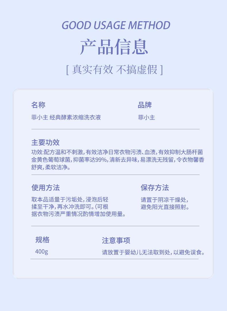自营(菲小主 )- 馨香舒爽柔软洁净 经典酵素浓缩洗衣液400g