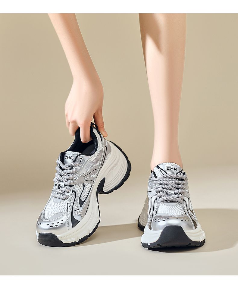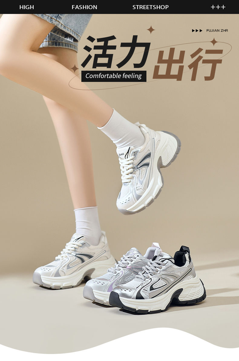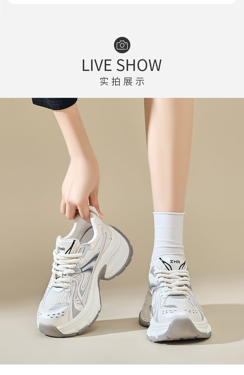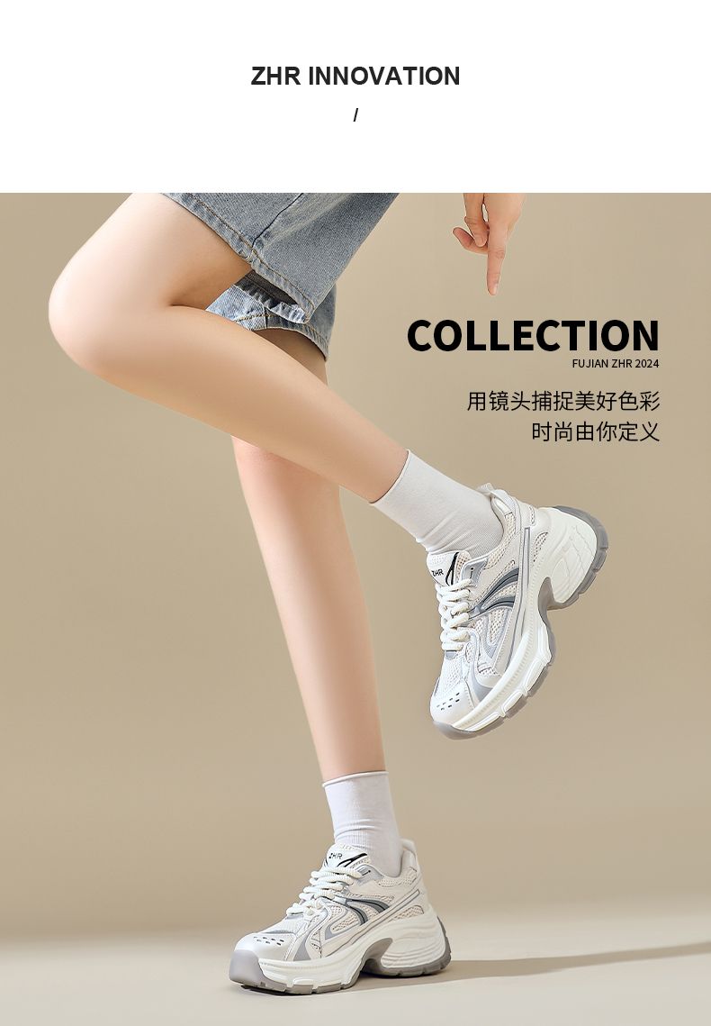 ZHR则则透气网面厚底老爹鞋女2024新款秋季百搭休闲运动鞋增高鞋
