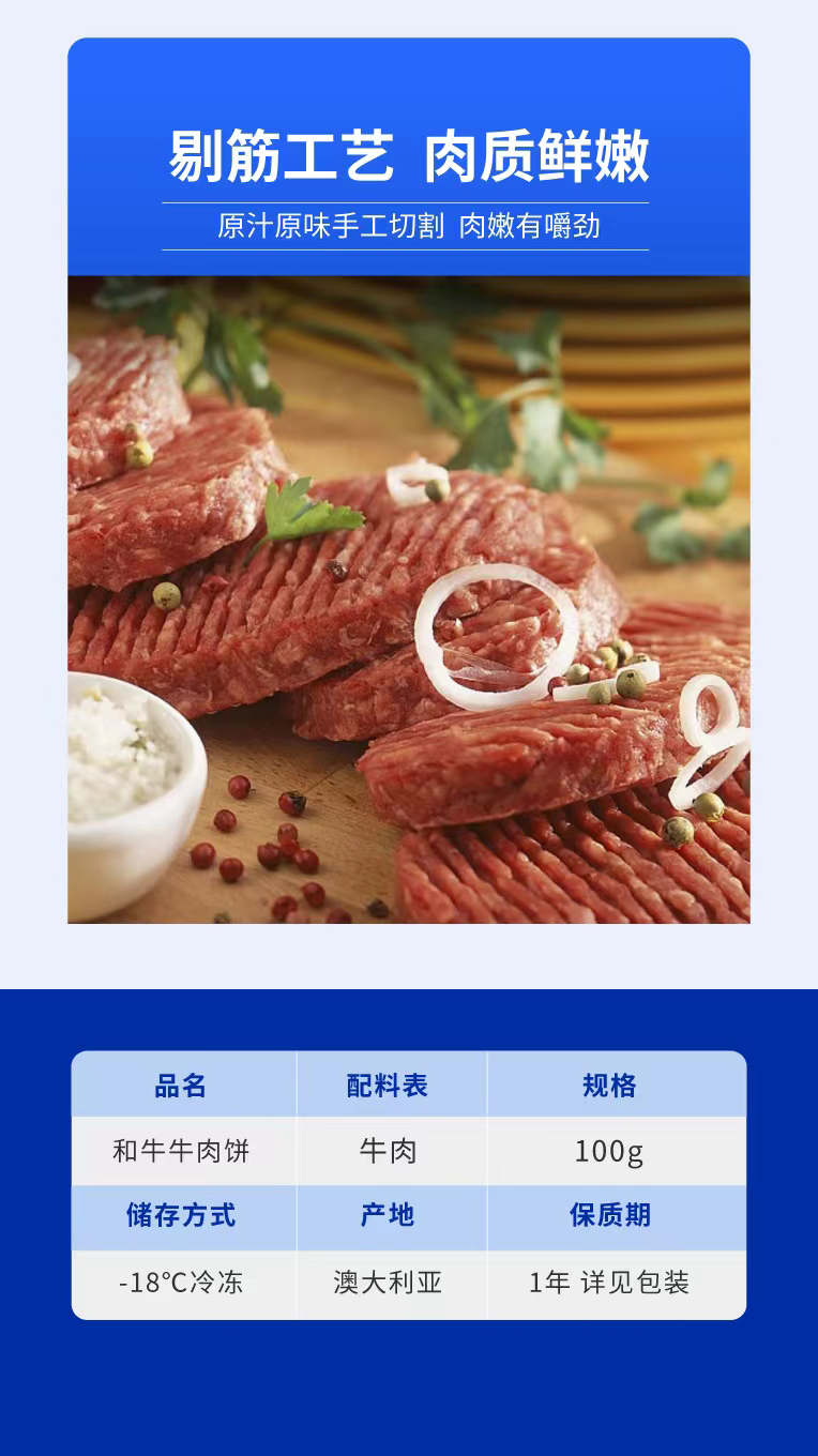 【谷饲牛肉饼】犇西诗原切谷饲和牛好吃牛肉饼汉堡肉饼汉堡1000g