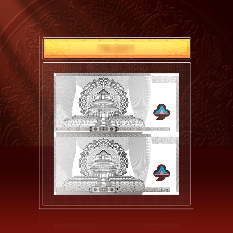 迎接新世纪纪念钞彩色纪念银双连体(3克银)单张封装版
