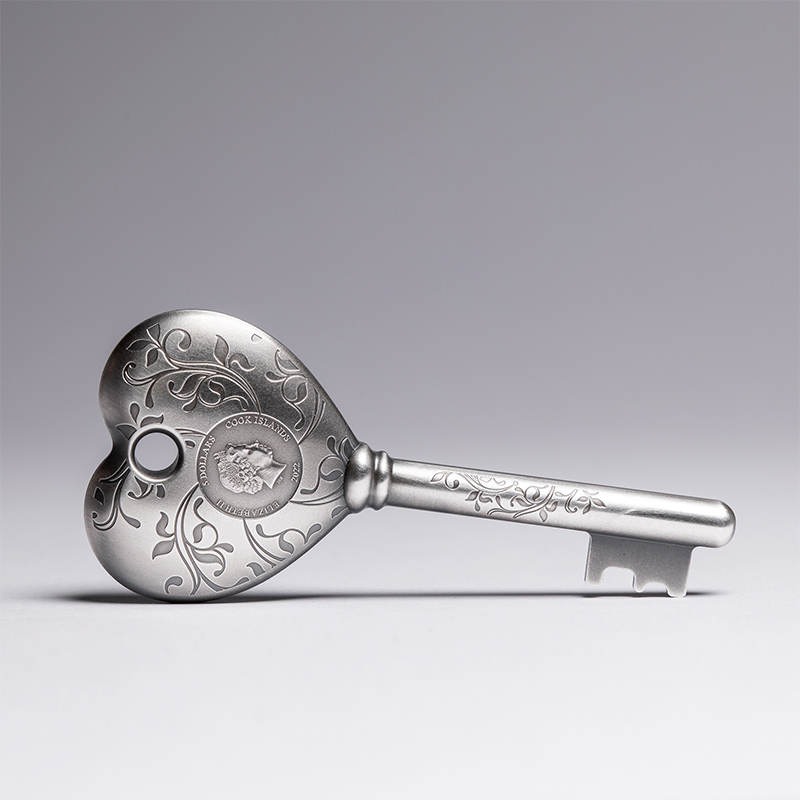 此链接上架的为3D立体造型的钥匙银币,得益于采用了先进的智能造币技术,所以币整体的弧度、凹刻花纹都非常自然。上方中心,还有一个小孔,可以作为一个挂坠。