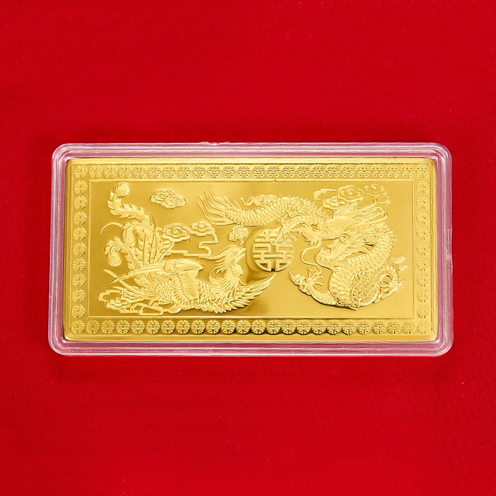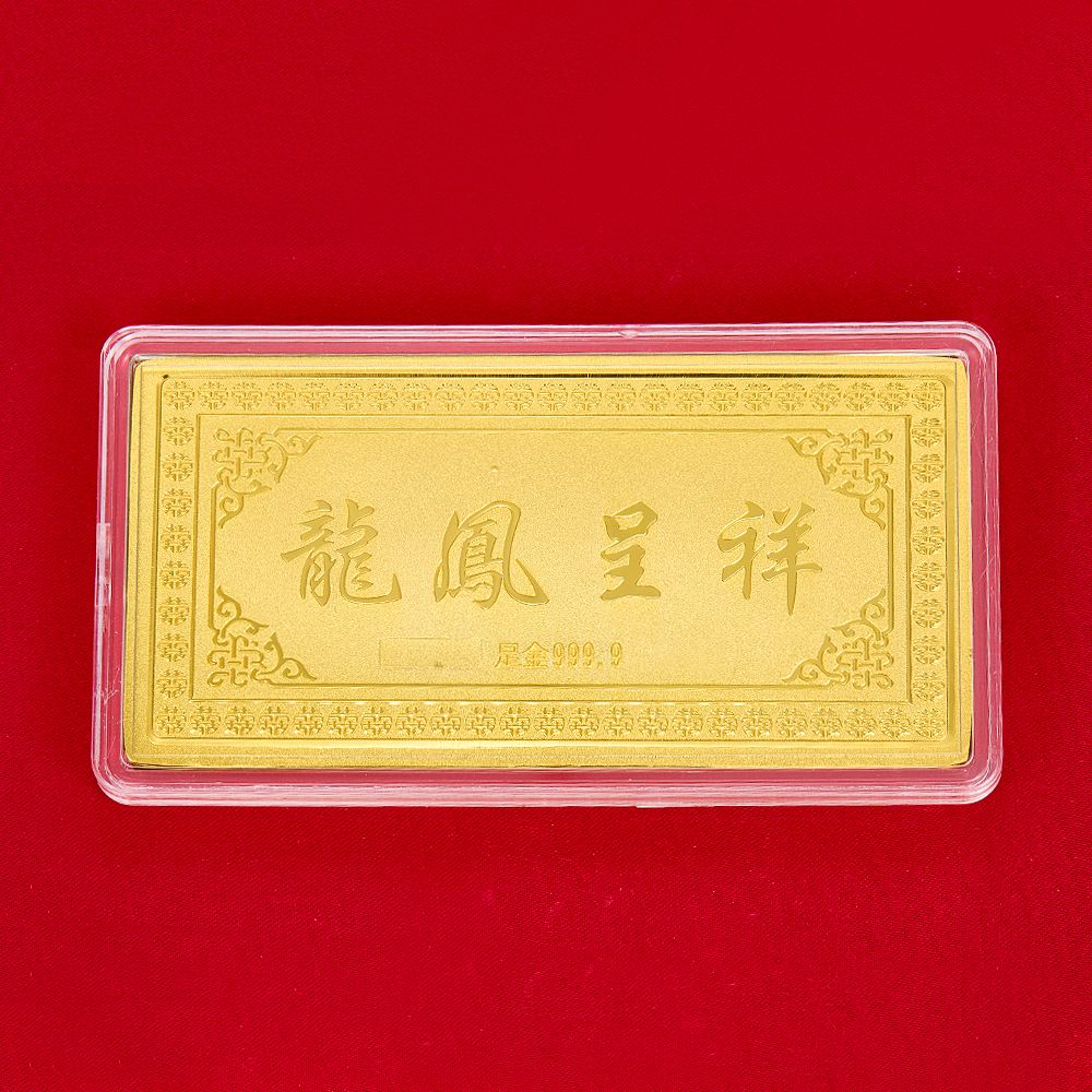 金条表面精雕龙凤呈祥元素,寓意吉祥美好,婚庆必备
