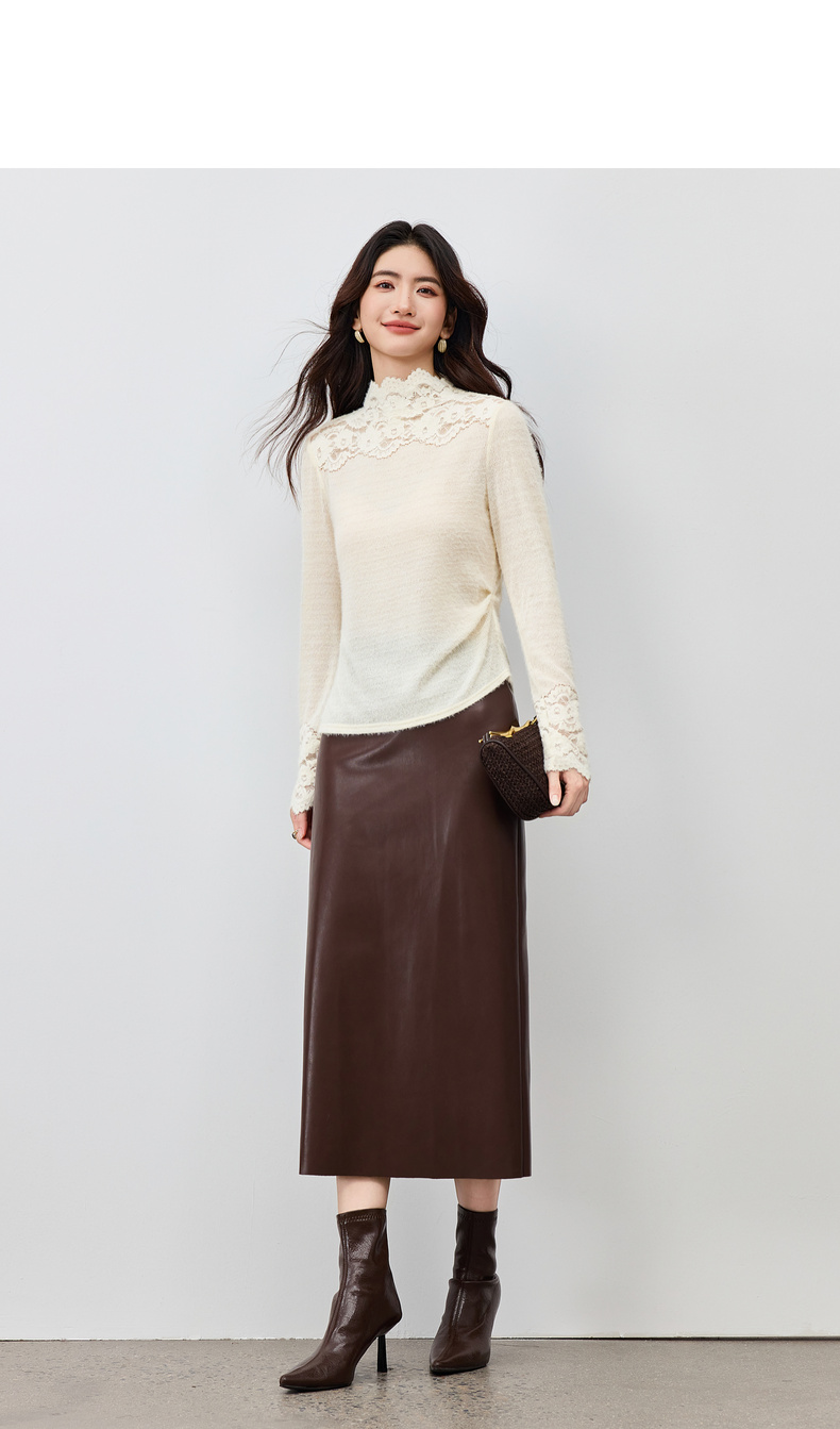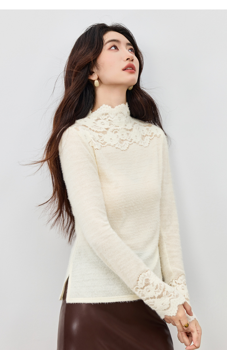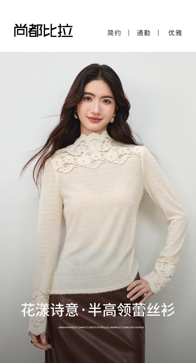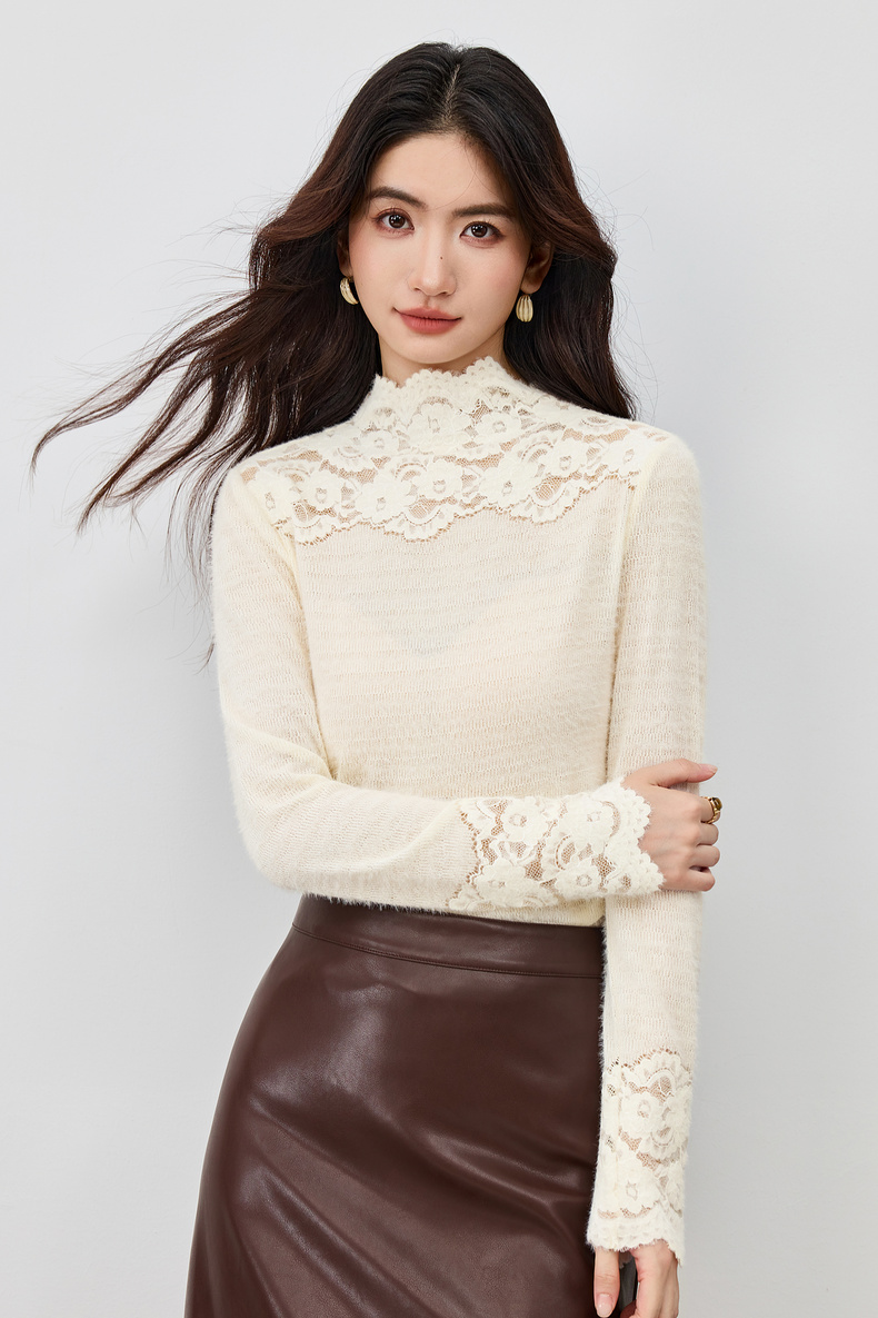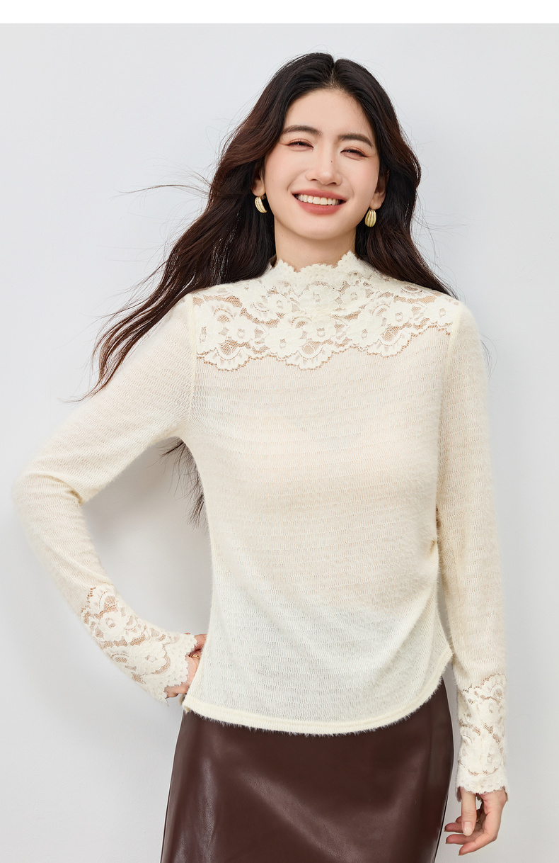 【内购】【定位镂空花卉】优雅浪漫半高领修身弹力外穿内搭磨毛蕾丝衫-154SA4036