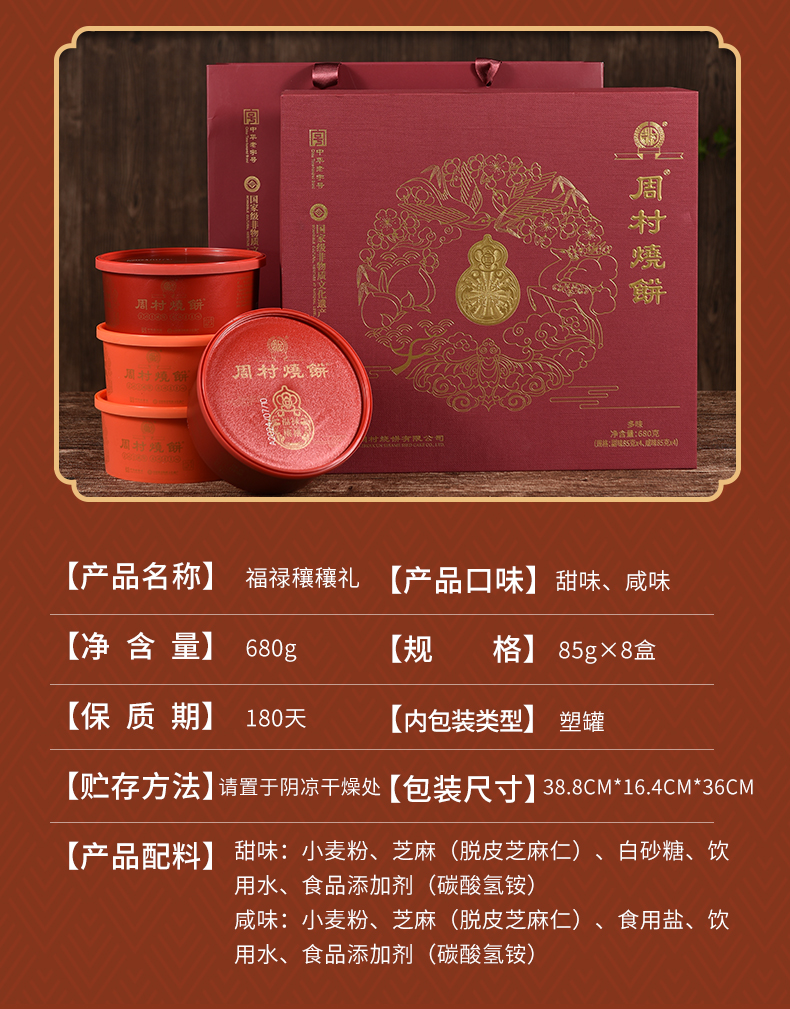 周村烧饼山东特产福禄穰穰礼盒甜咸芝麻饼各半中华老字号85gx8罐