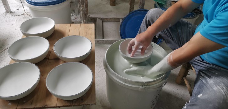 秘制官釉,反复施釉7-9遍,形成厚釉层。每一遍都要等前一遍干了再上下一遍。因此上釉至少需要5-7天的时间。