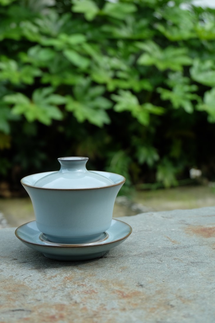 【仿南宋官窑】粉青釉盖碗 元宝盖碗 马蹄盖碗 斗笠盖碗 如意盖碗 紫口铁足 自然开片 景德镇制