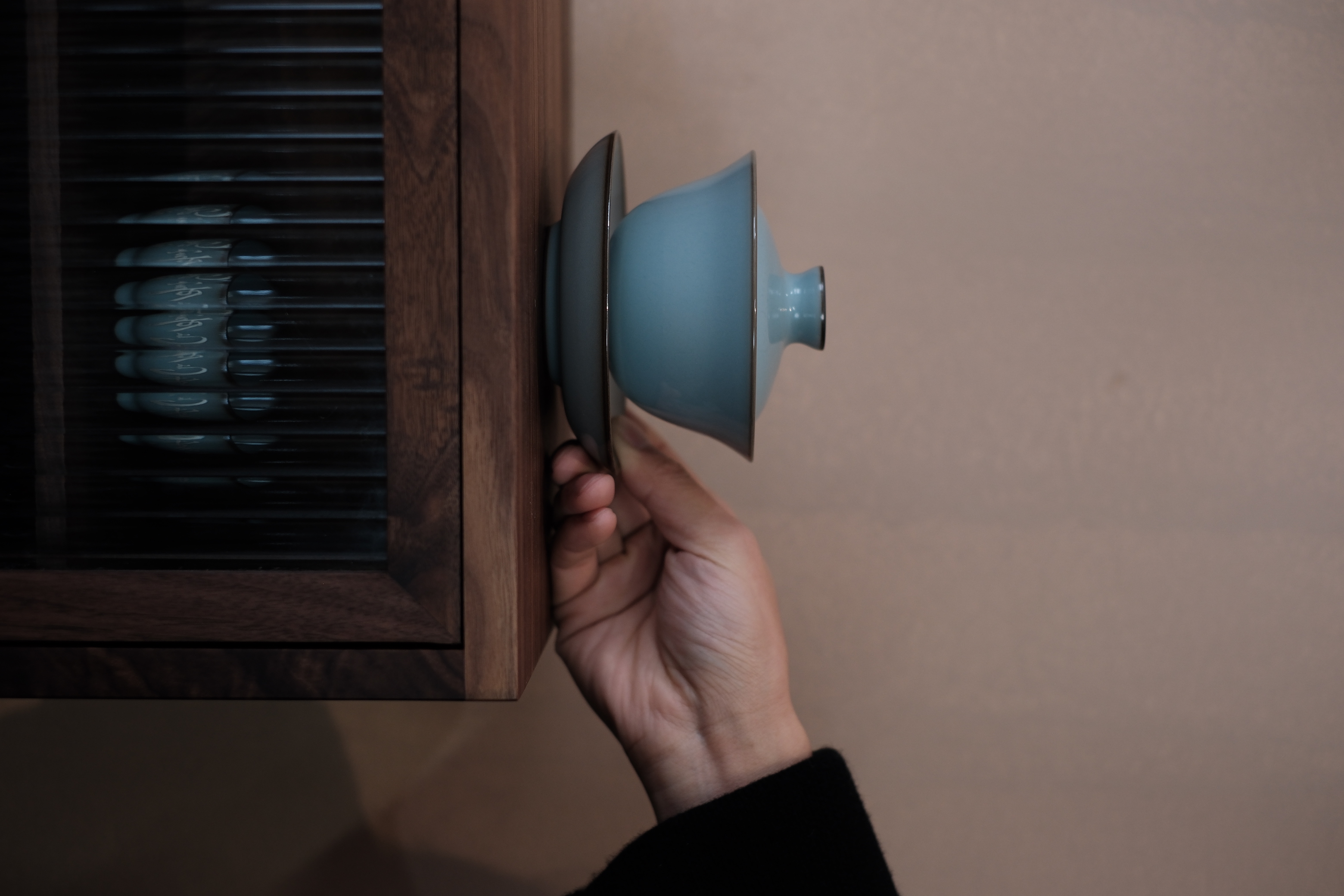 我们选择的官窑瓷,沿用古法,原矿紫金土与景德镇细瓷土(已无高岭土)拼配,经1300度以上高温烧制,口沿还原胎体本色,自然形成“紫口铁足”。