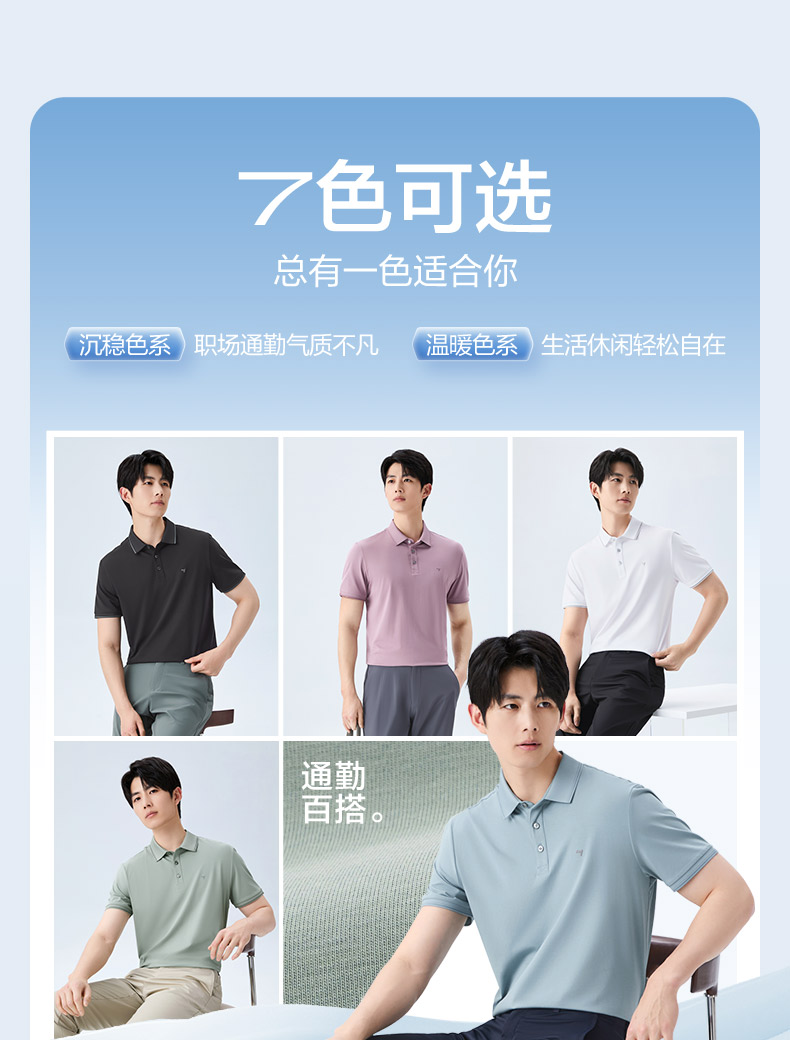 【持久如新/不变形领】柒牌男式短袖POLO衫26春夏新款舒适T恤衫 130T70270
