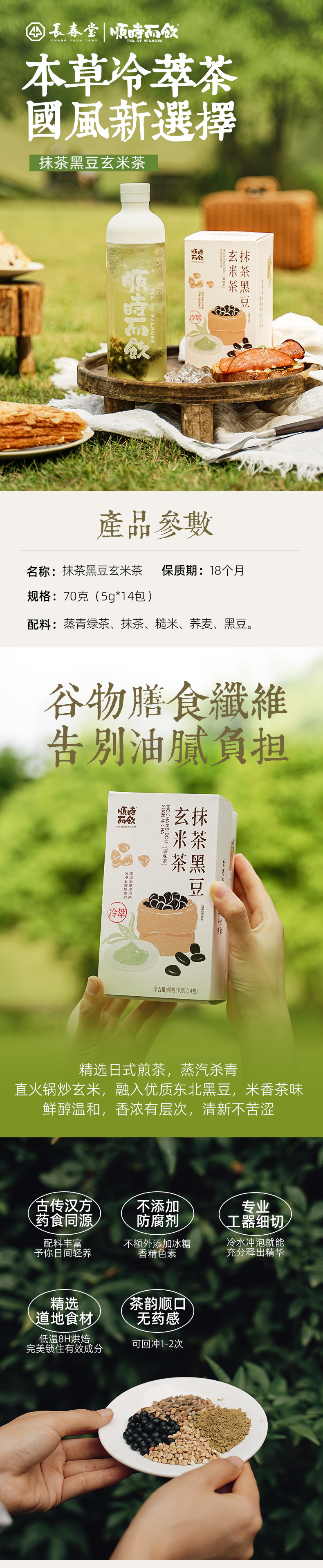 顺时而饮 | 抹茶黑豆玄米冷泡茶70克(14包)