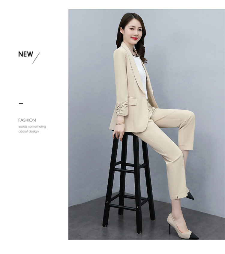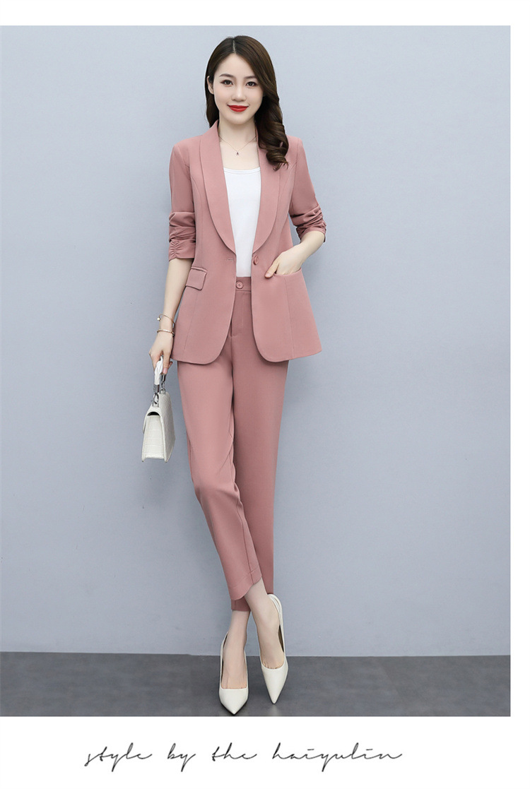 西装套装,秋季新款显瘦气质时尚职业洋气减龄休闲西服两件套HR-ZRX3079