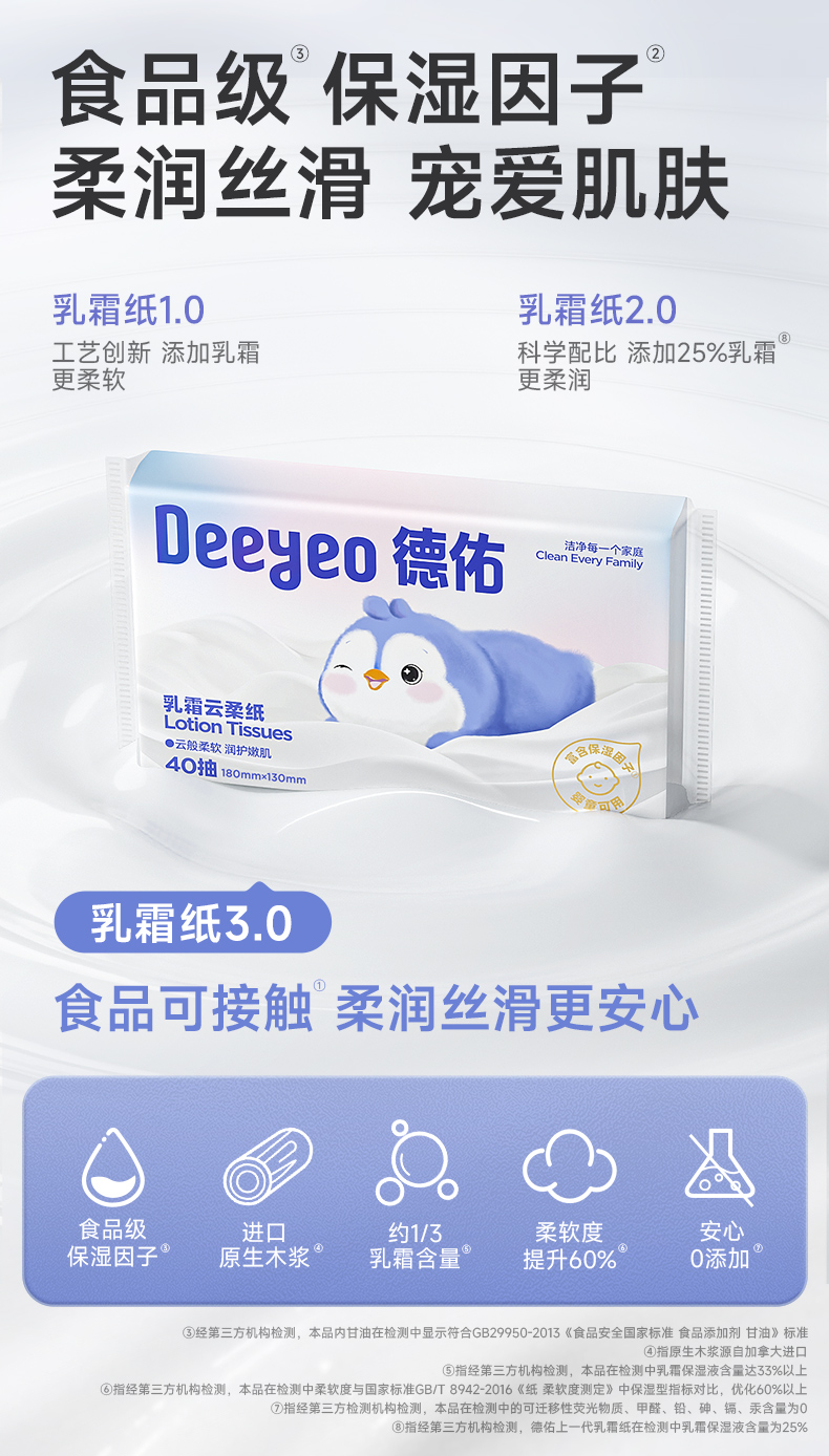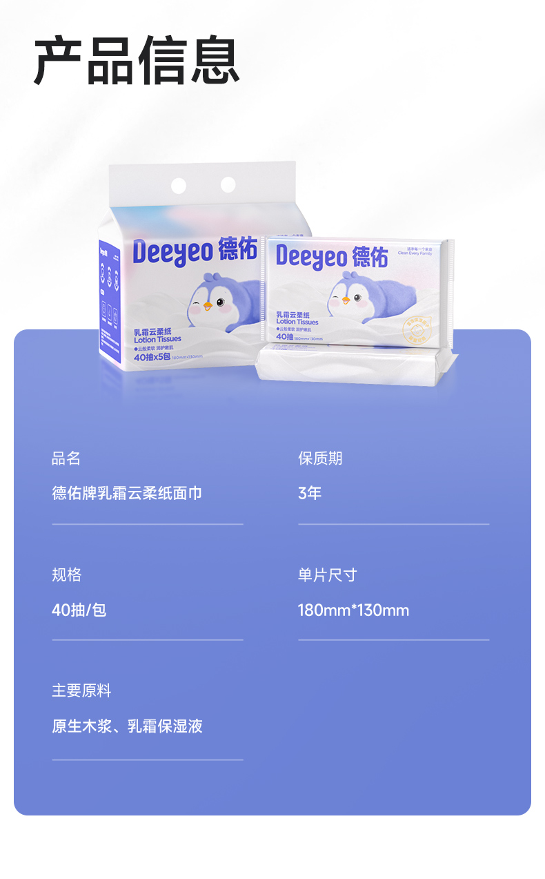 德佑乳霜柔纸巾宝宝专用超柔纸巾新生儿保湿乳霜纸40抽*5包/15包/30包
