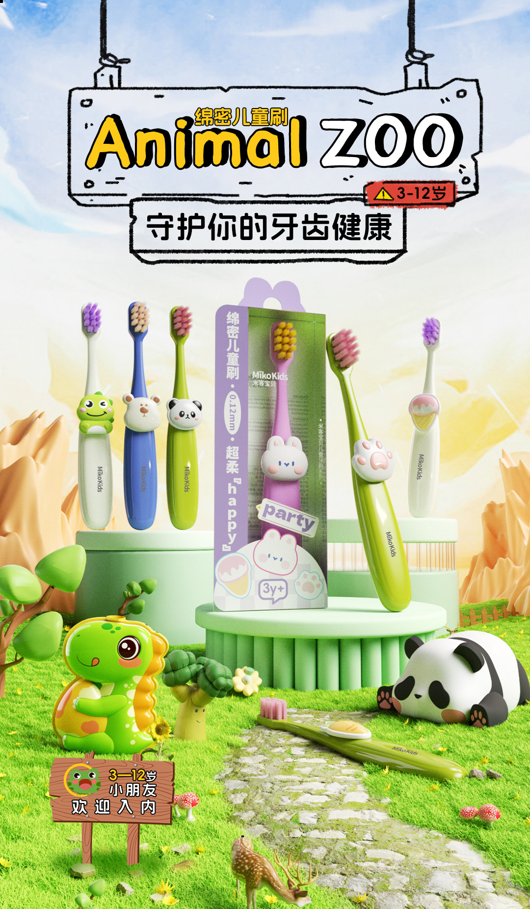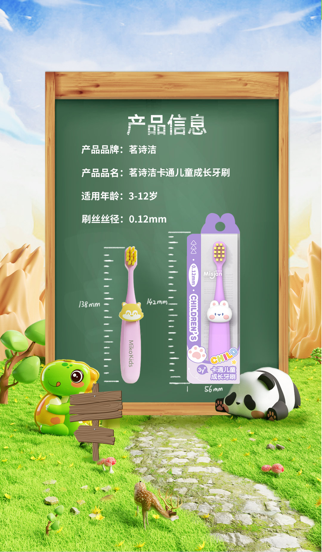 茗诗洁卡通儿童成长牙刷(240653)