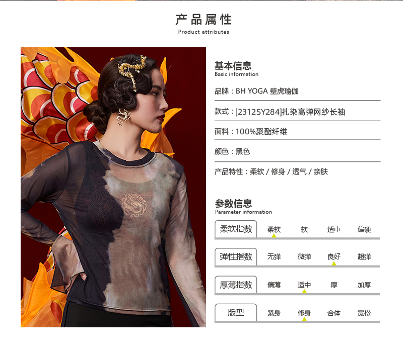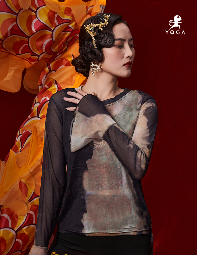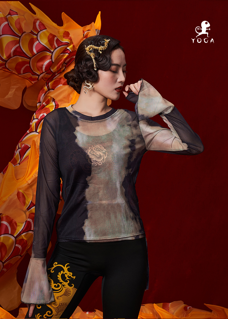 壁虎瑜伽【2312SY284】扎染网纱高弹长袖【5天发货】