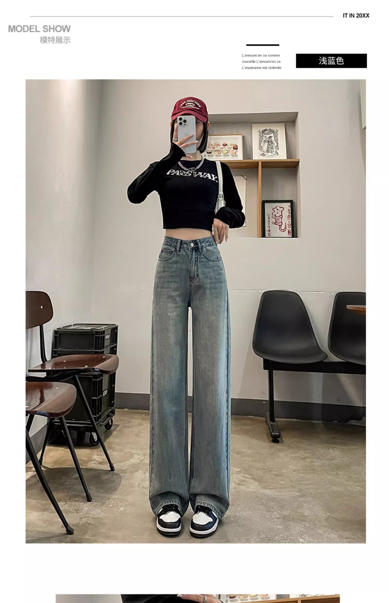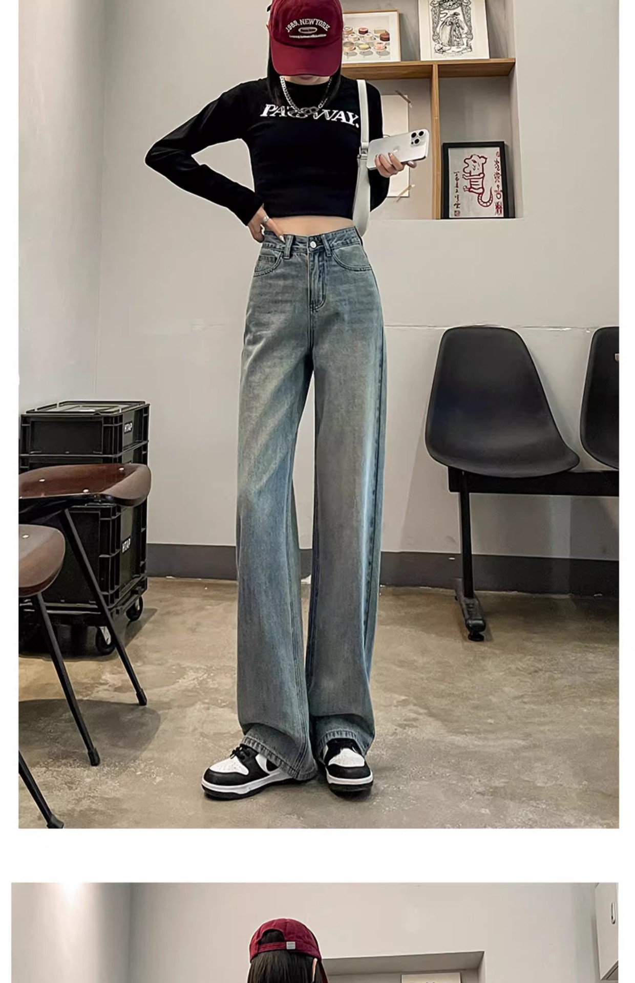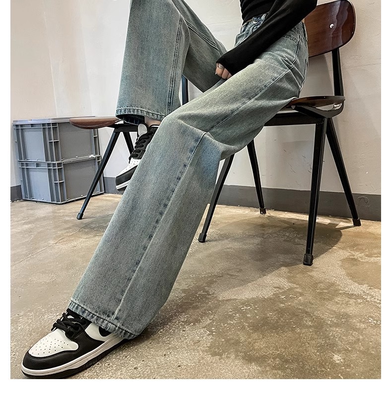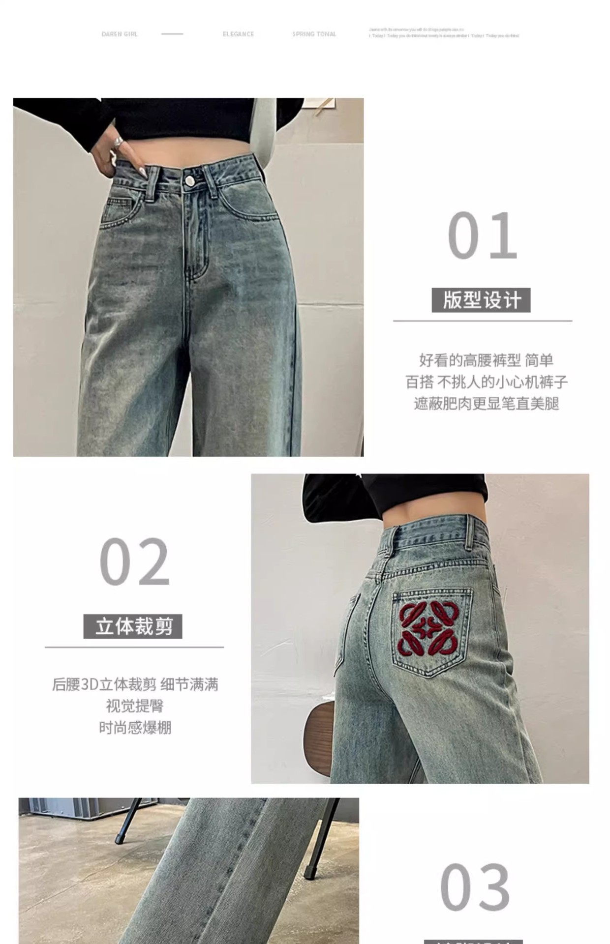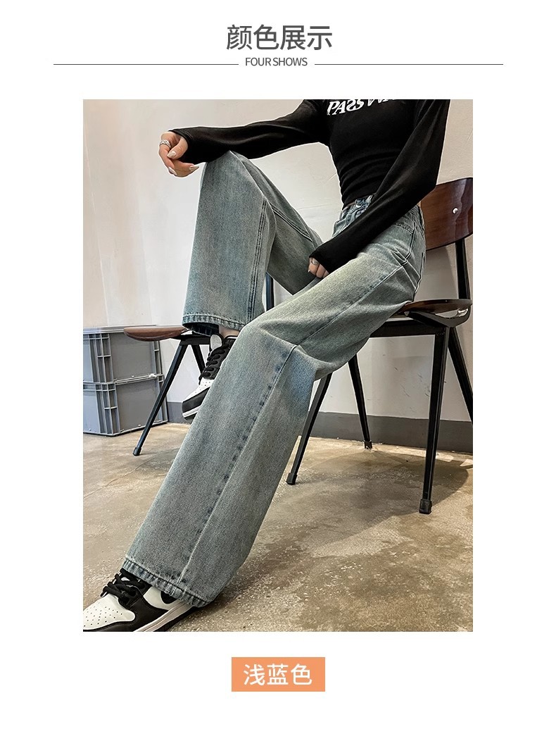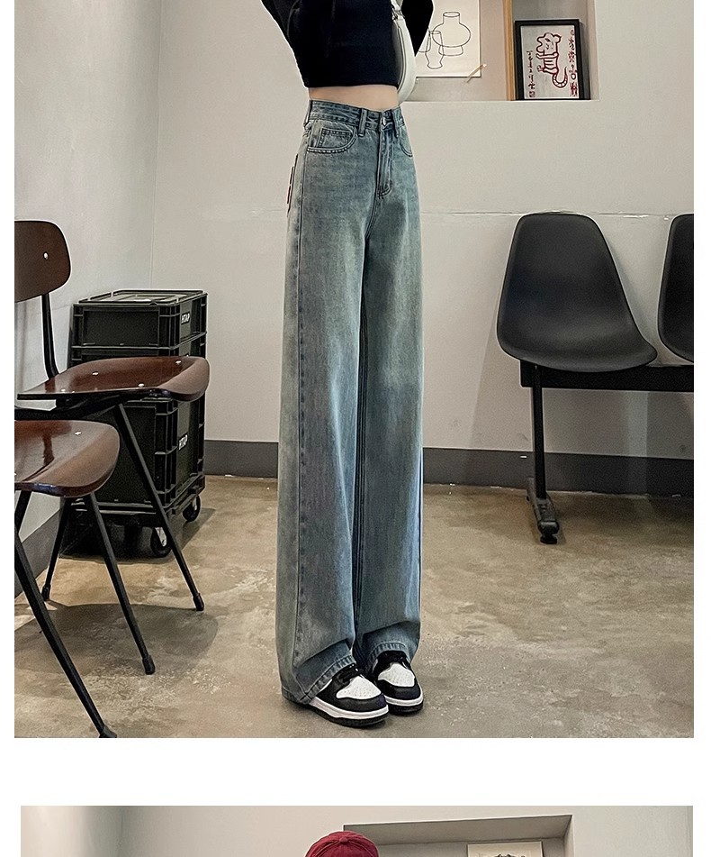 国风刺绣牛仔裤女春秋2024年新款浅色小个子宽松直筒窄版阔腿裤子