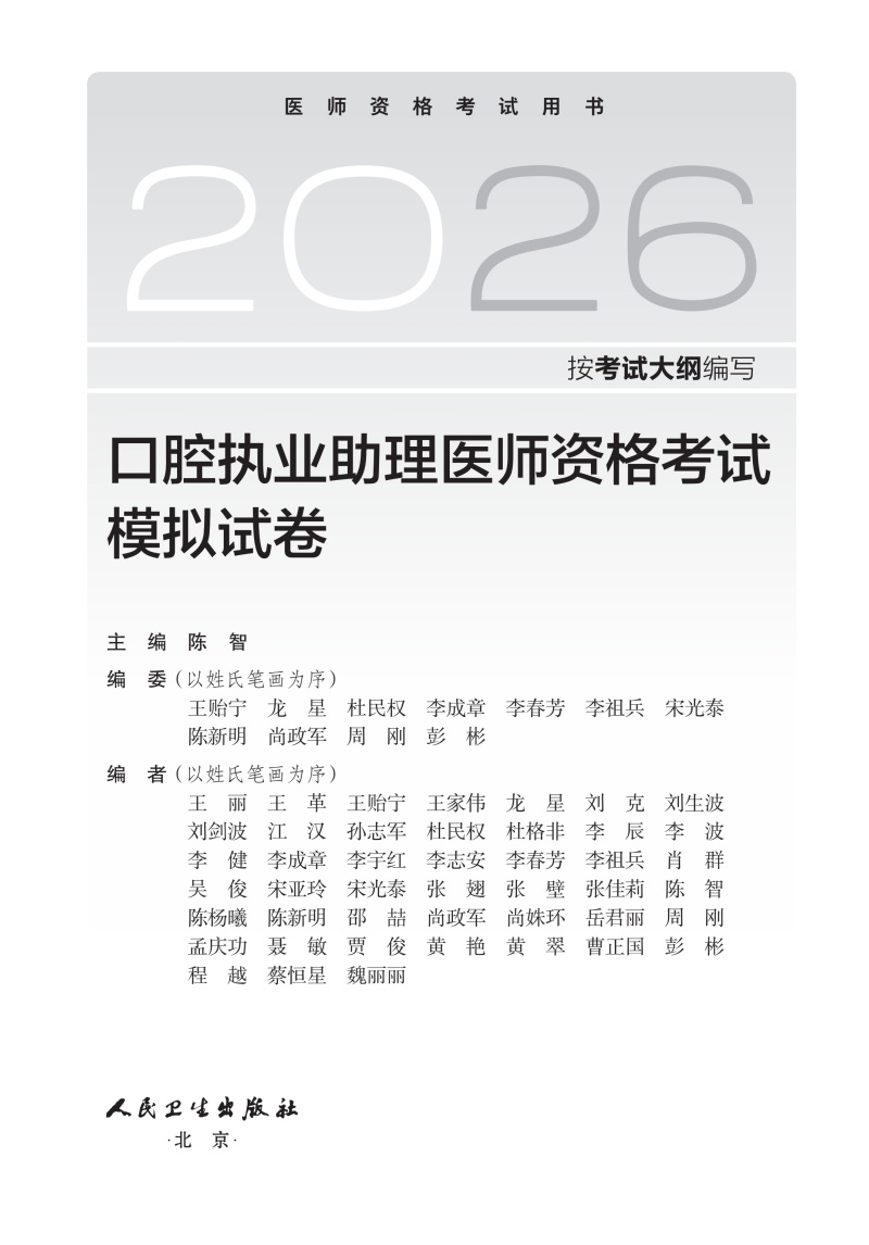 书名:2026口腔执业助理医师资格考试模拟试卷