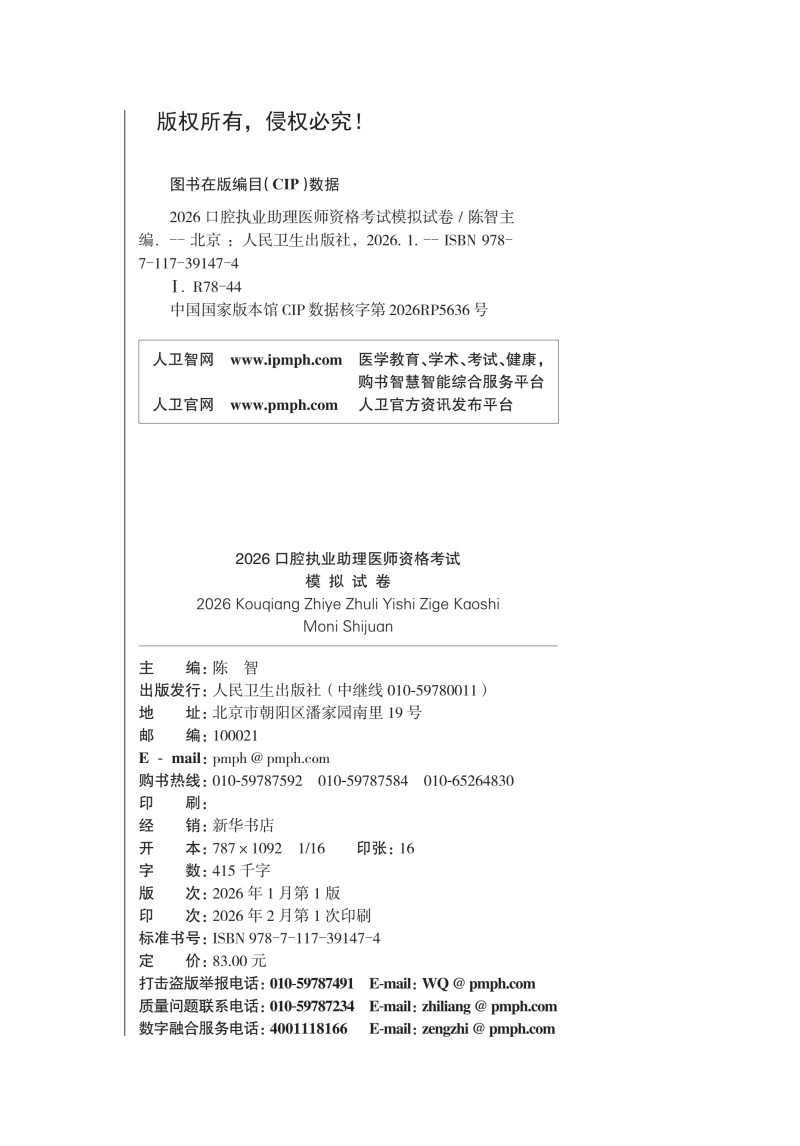 2026口腔执业助理医师资格考试模拟试卷 医师资格考试用书 陈智 主编 考试用书 2026执业医师口腔科学9787117391474人民卫生出版社