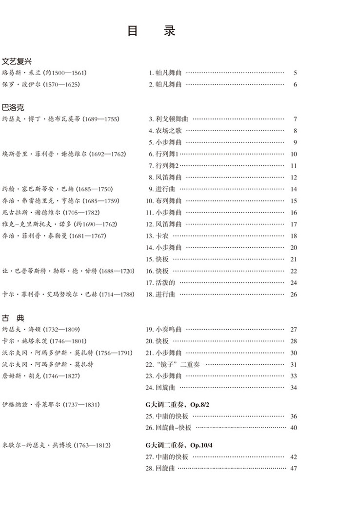 本系列丛书共包 六本曲谱,分别是为小提琴、吉他、钢琴、单簧管、大提琴和长笛改编的简易版世界名曲二重奏,全系列均由各领域的专业演奏家改编,音乐在 呈现原作音乐情绪的前提下尽量降低难度,适合各类乐器学习者搭配练习和演出。本系列主编为马丁·海格尔,他是常年从事管弦乐教学工作的一线教师。