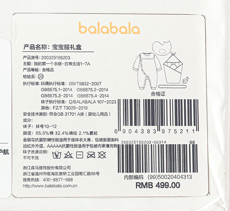【商场同款】巴拉巴拉新生儿礼盒宝宝初生礼2025新款四件套可爱萌