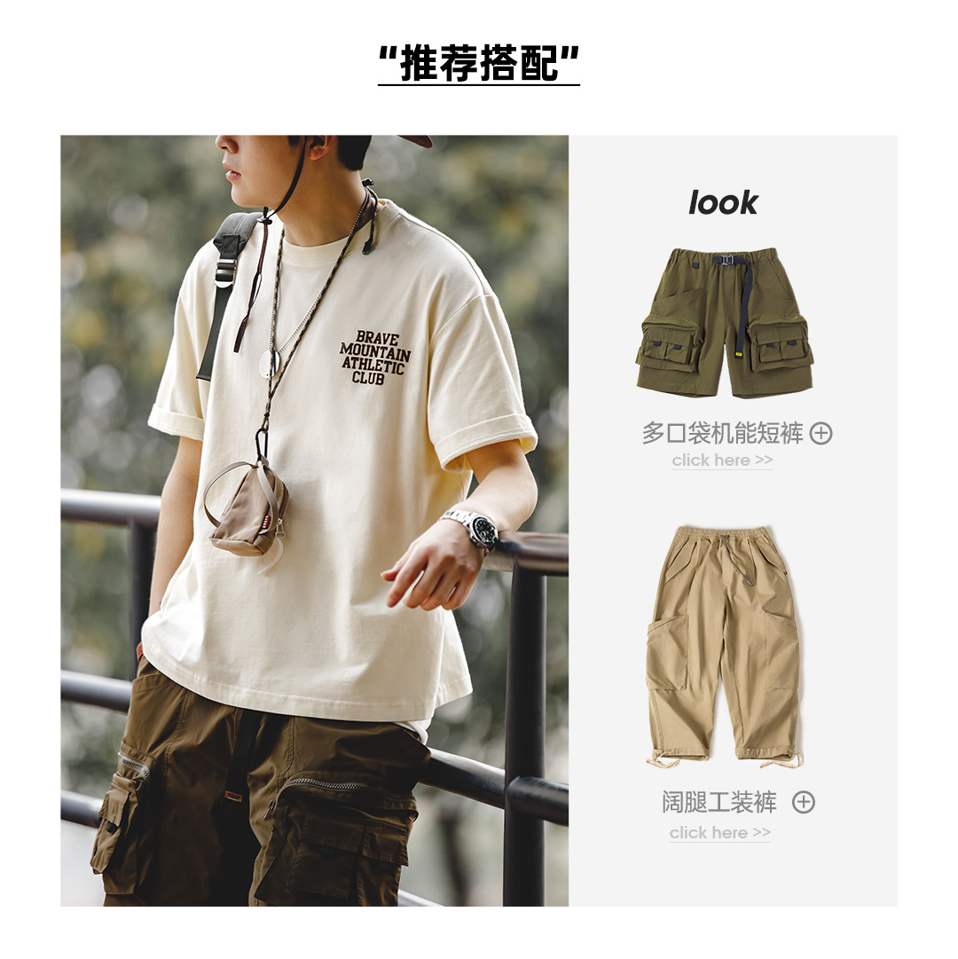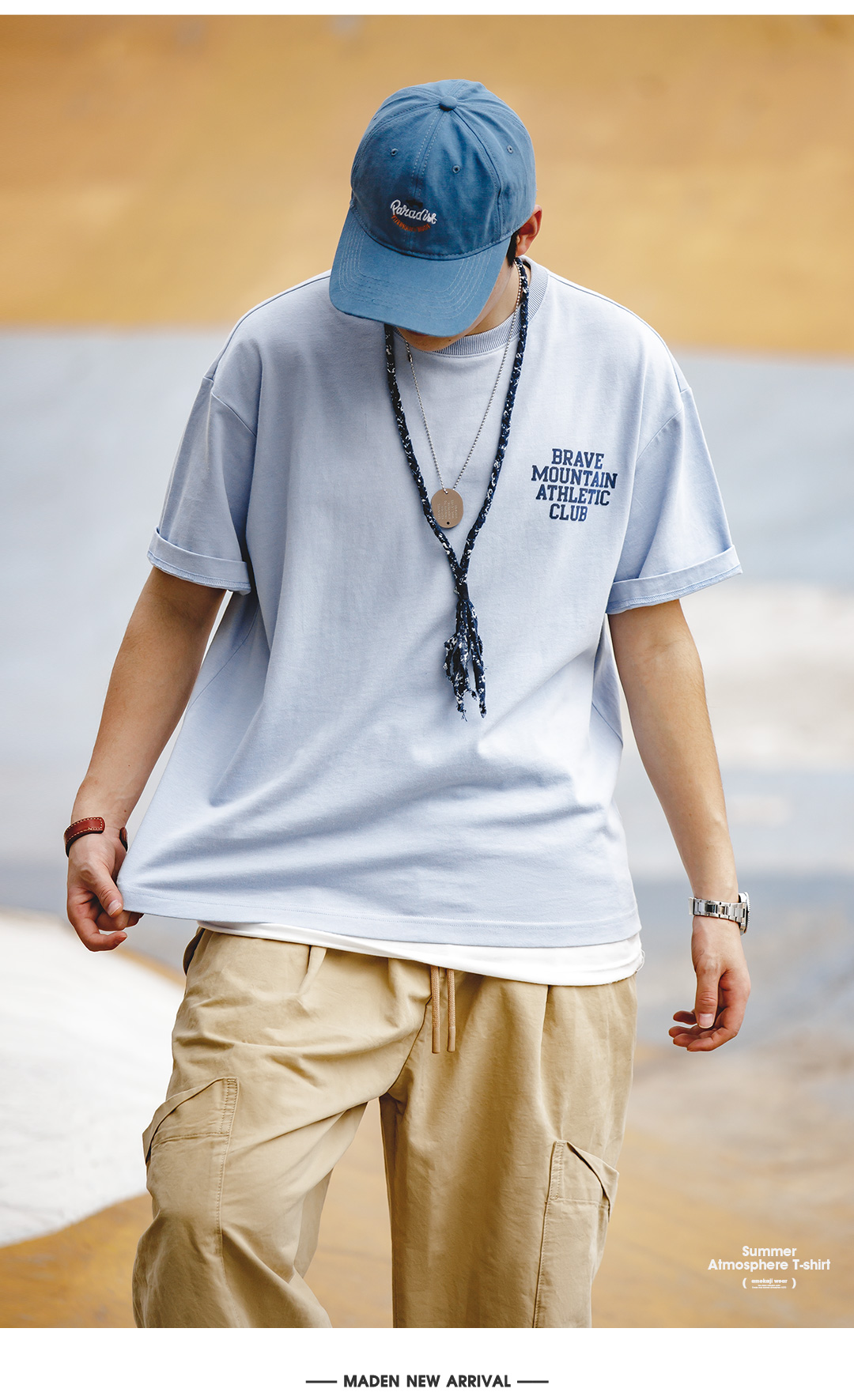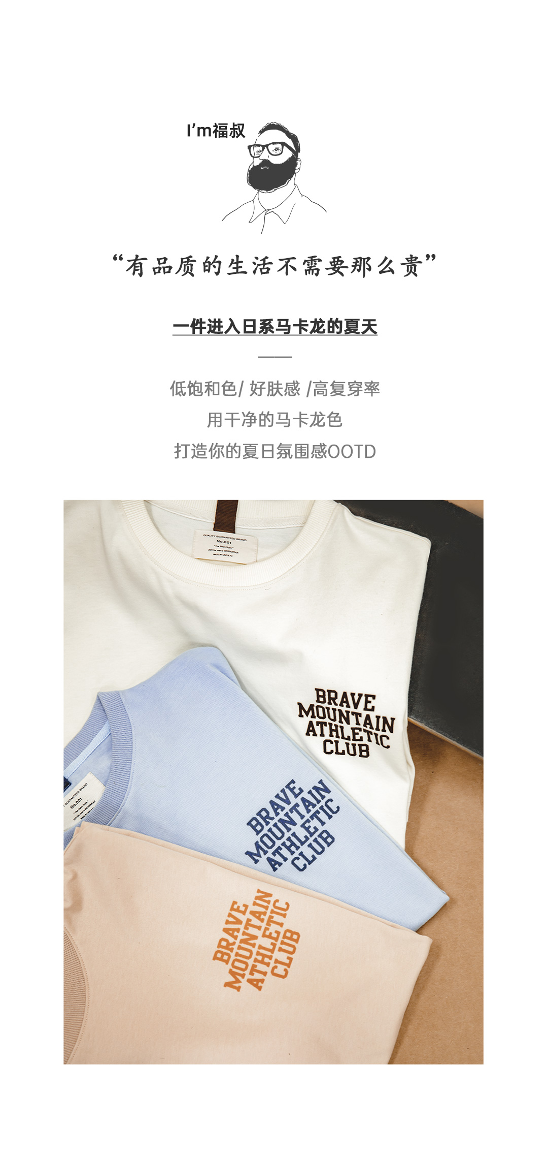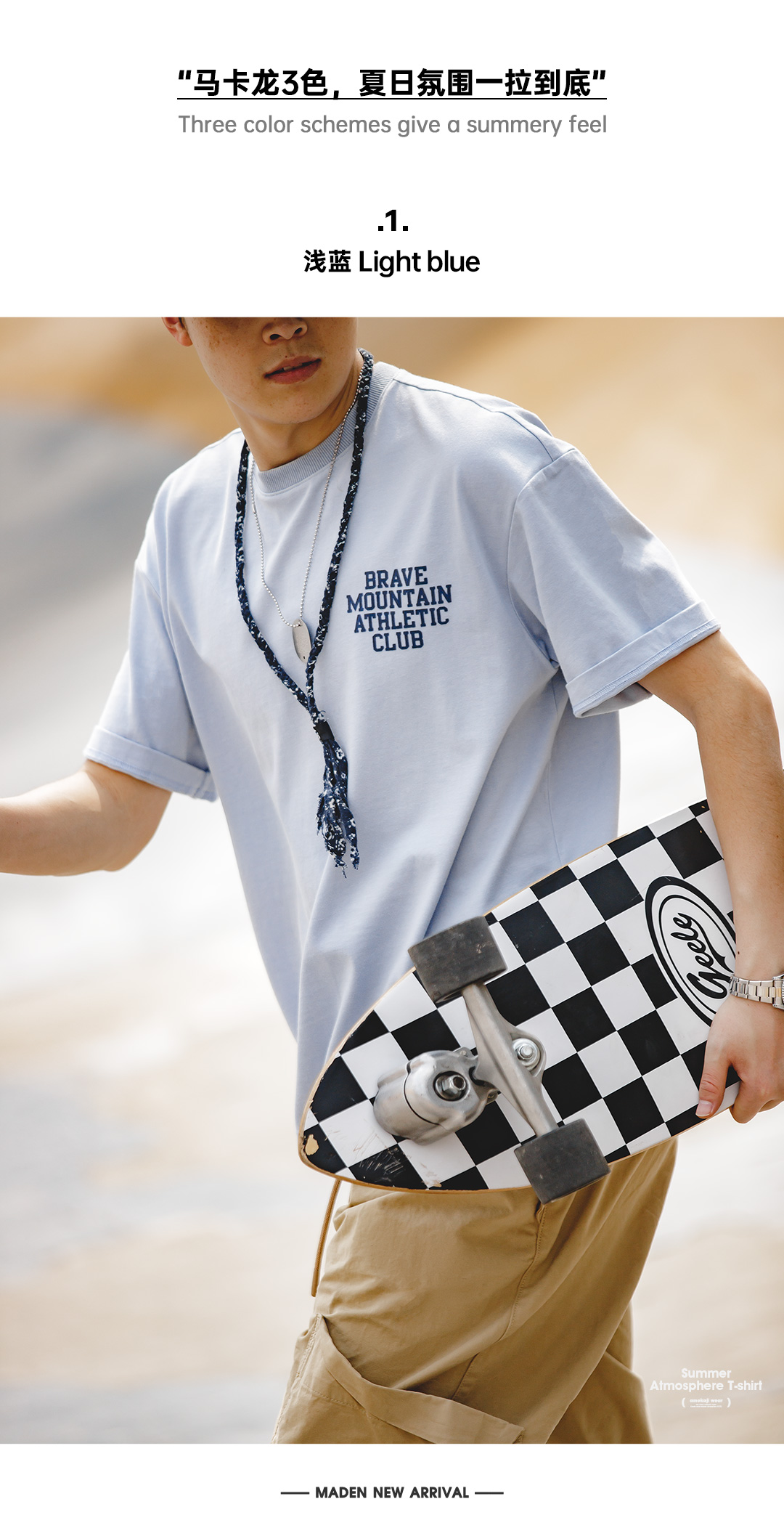 马登工装 美式休闲马卡龙色短袖t恤植绒字母印花全棉圆领体恤男夏