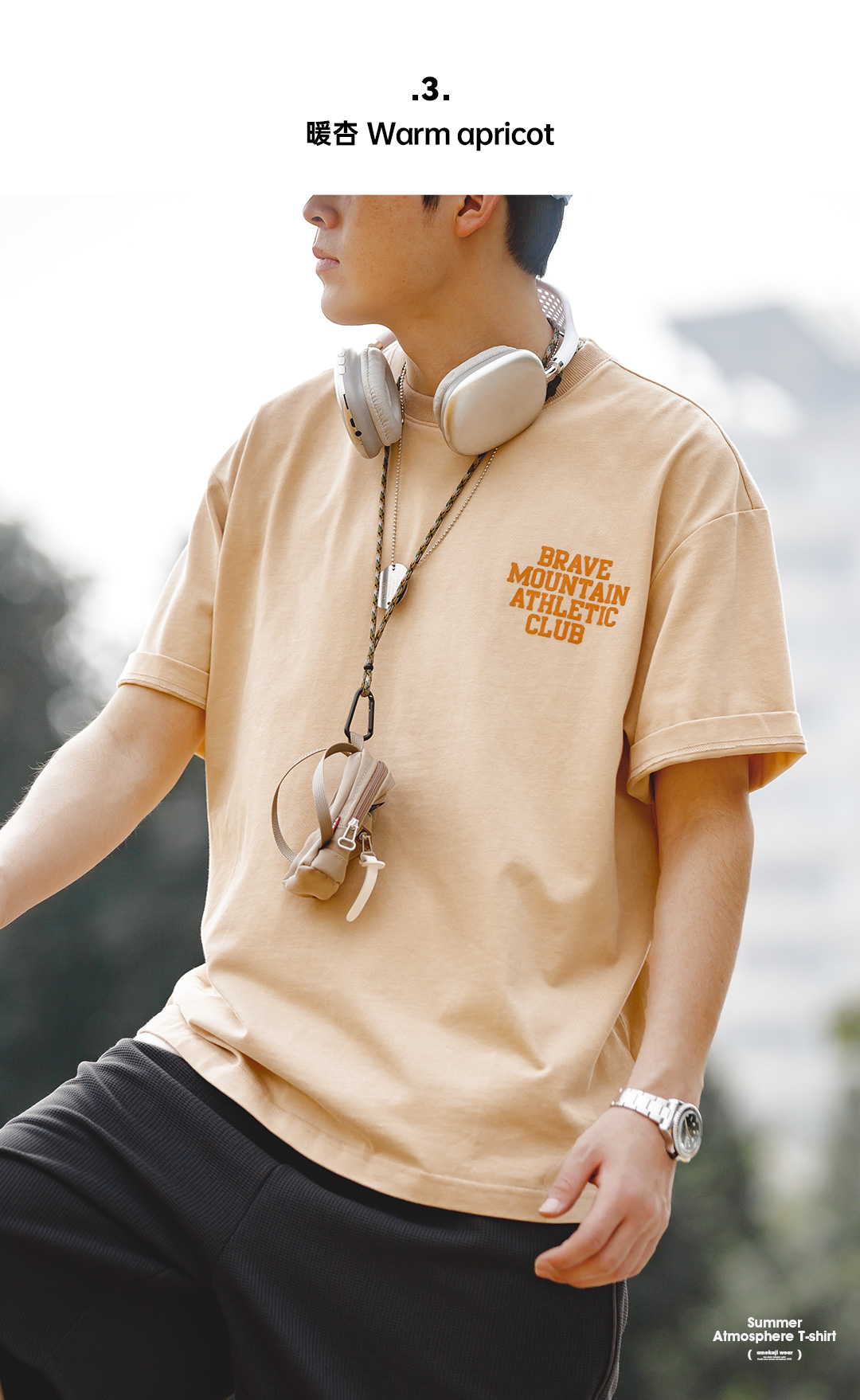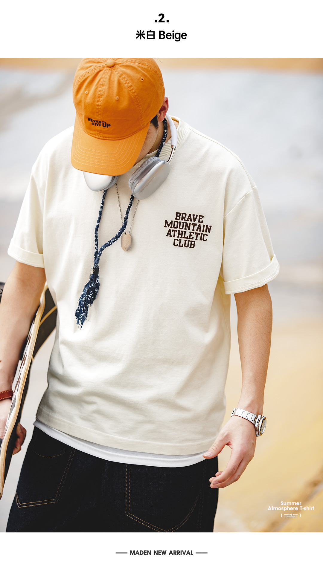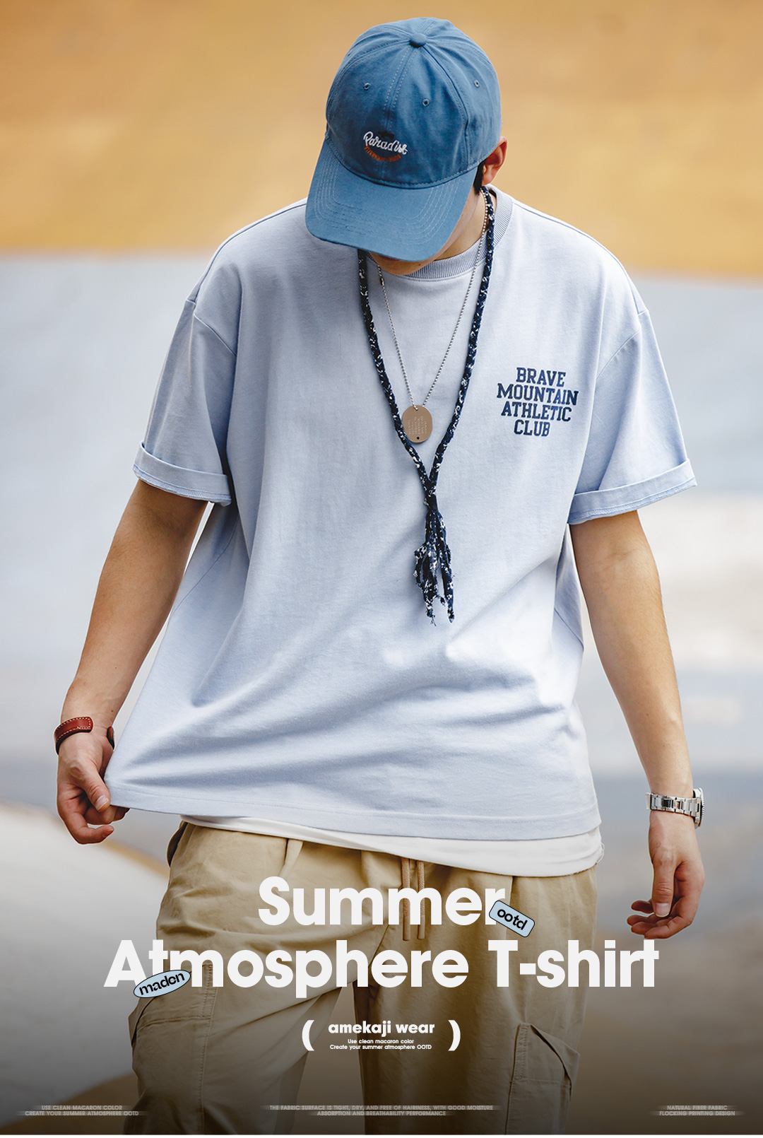 马登工装 美式休闲马卡龙色短袖t恤植绒字母印花全棉圆领体恤男夏