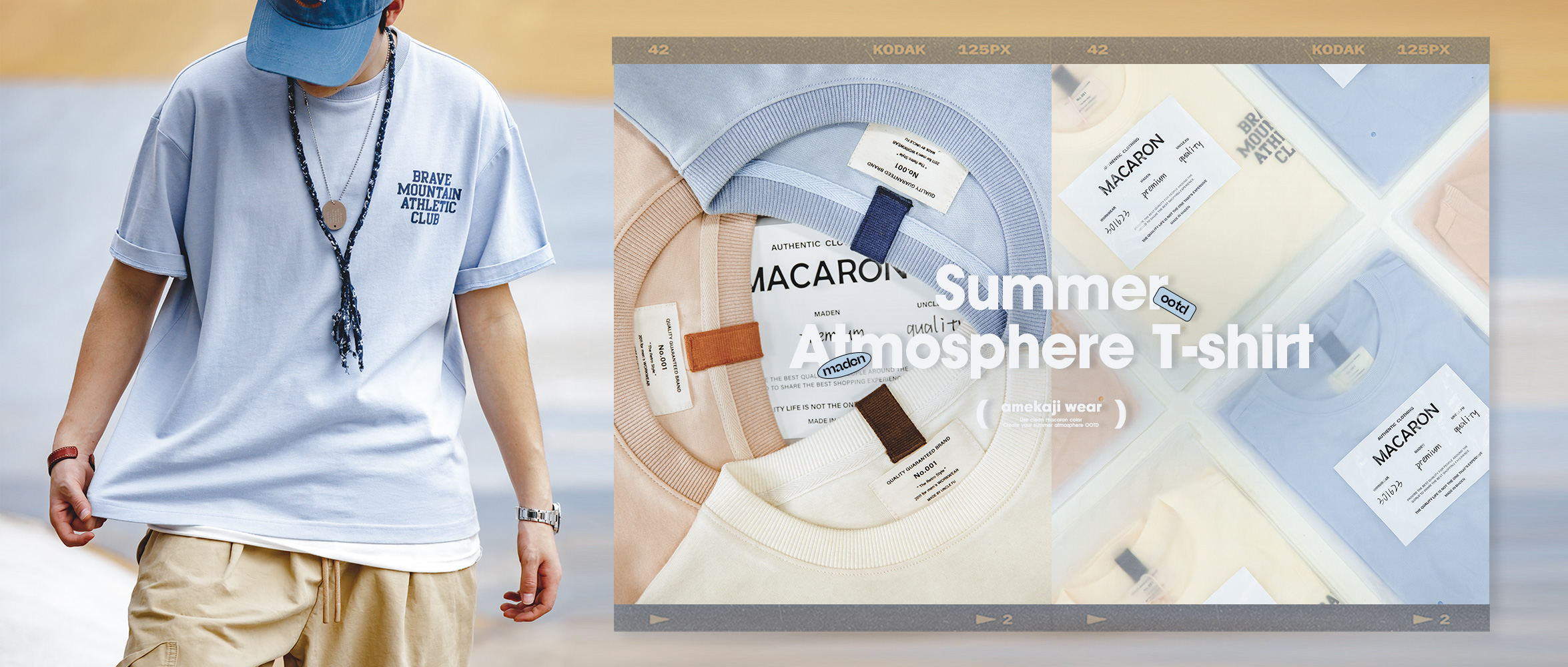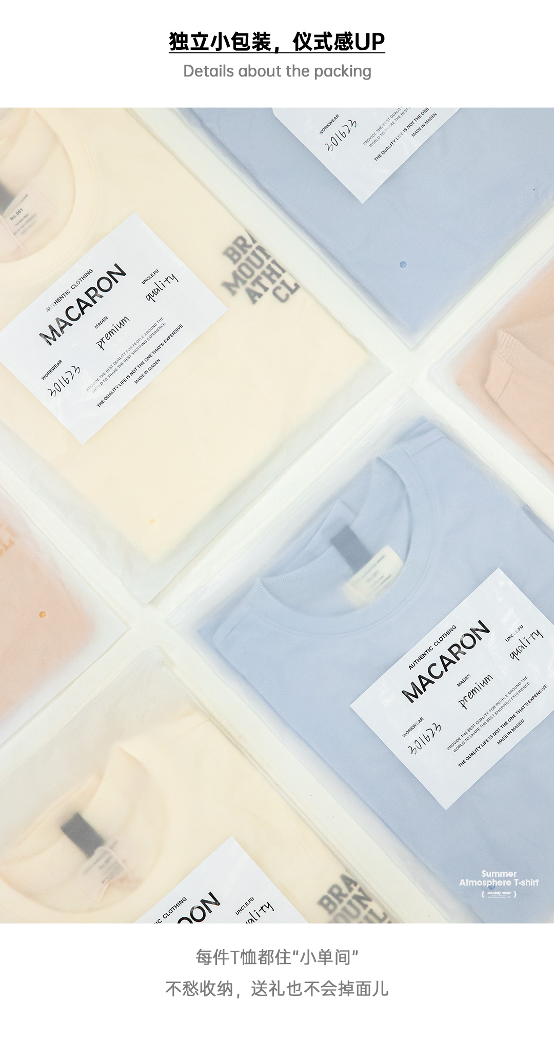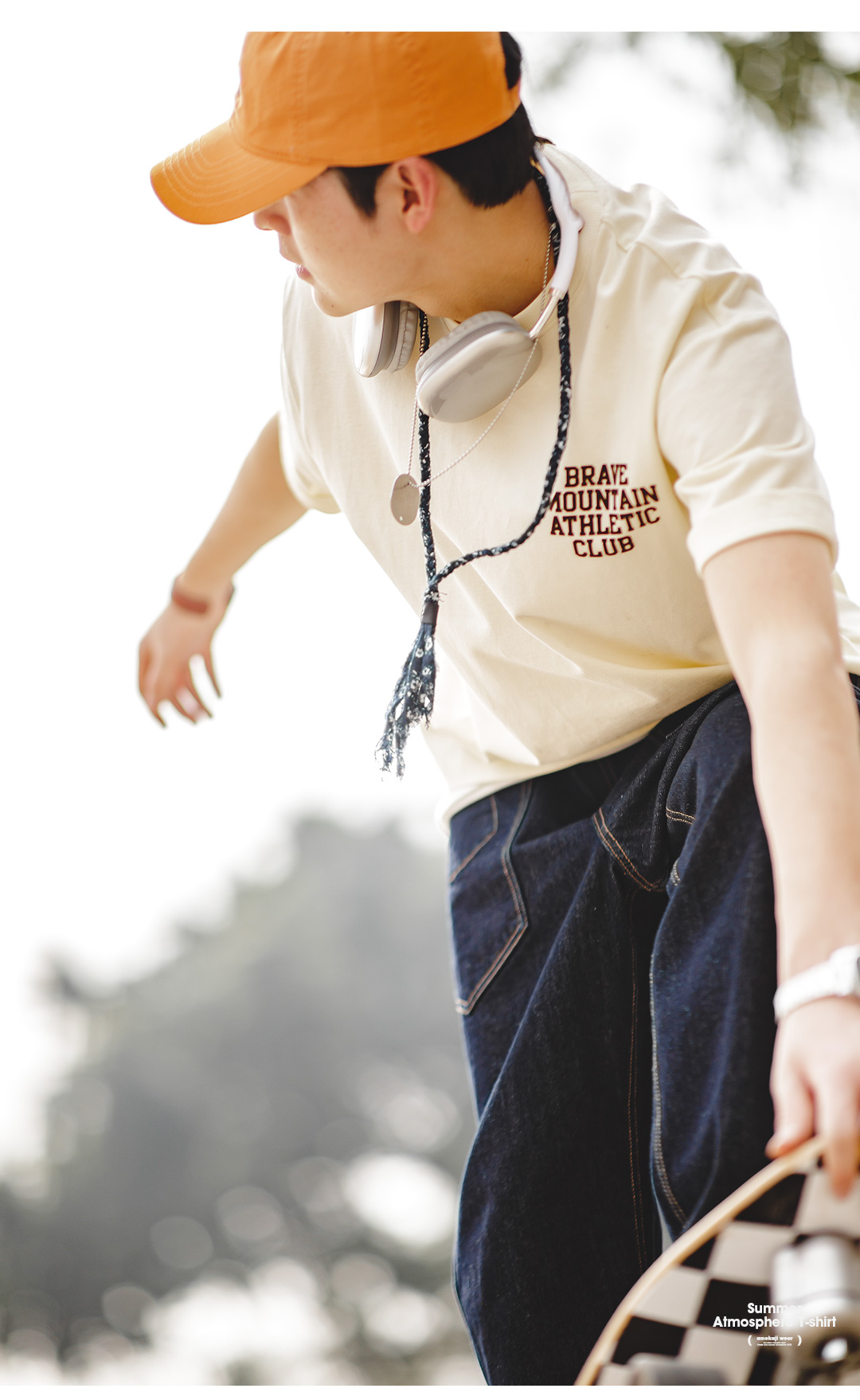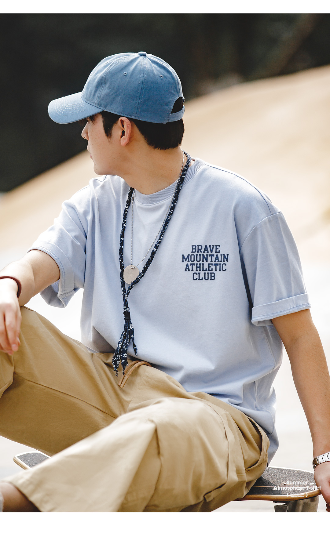 马登工装 美式休闲马卡龙色短袖t恤植绒字母印花全棉圆领体恤男夏