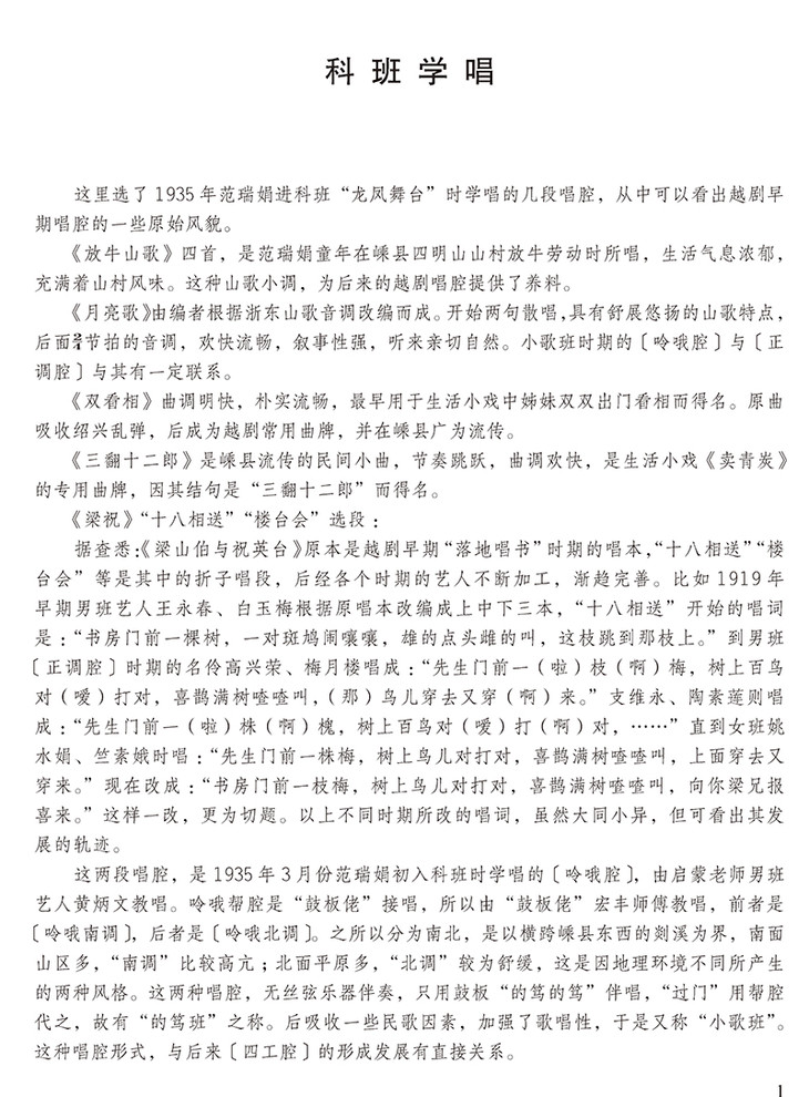 范瑞娟唱腔淳朴滋实,稳健大方,热情内涵,旋律华采,拖腔丰富,咬字坚实,发音宽厚,具有男性稳健、轩昂的气质。嗓音实,声宏亮,中气足,音域宽,演唱追求刚劲的男性美。演唱时从不追求单纯的舞台效果,而是致力于深入开掘角色内心的思想感情。连波编写的《范瑞娟越剧唱腔精选(附光盘)》收录了范瑞娟的多段经典越剧片段,不仅有听觉,还配有详尽谱例和文字,让读者 欣赏大师经典唱腔。