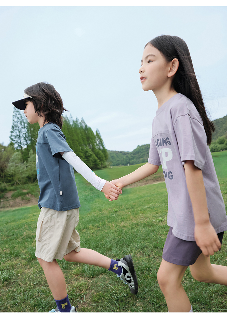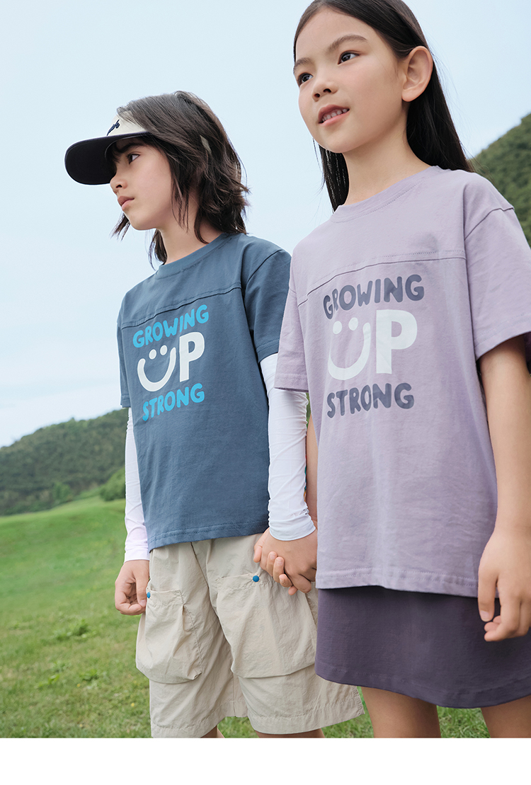 fx-【比纯棉更透气 柔软玉米棉】儿童笑脸字母印花T恤 PXT2424