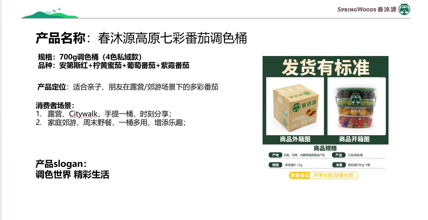 葡萄番茄: 春沐源的名片级产品,也是市场上少数派品种,形似葡萄,成熟后仍是绿色,皮薄肉嫩,清甜多汁,开胃解腻,汁水充盈。富含被称为“绿色的血液”的叶绿素,含量是其他颜色的3-7倍。