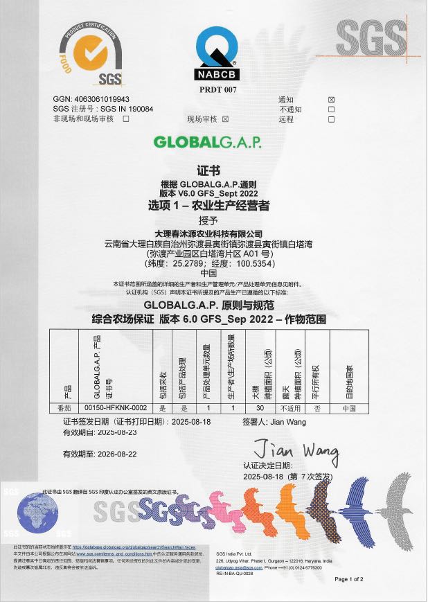 国际标准: 连续8年获得欧盟GLOBALG.A.P认证,GLOBALG.A.P是国际通行标准,进入欧美知名商超是必须的认证;