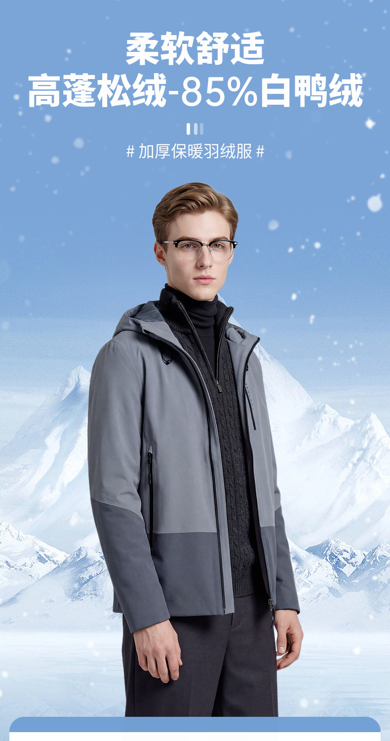 【白鸭绒】圣得西2025年男士冬季羽绒服厚款蓬松温暖拉链连帽外套