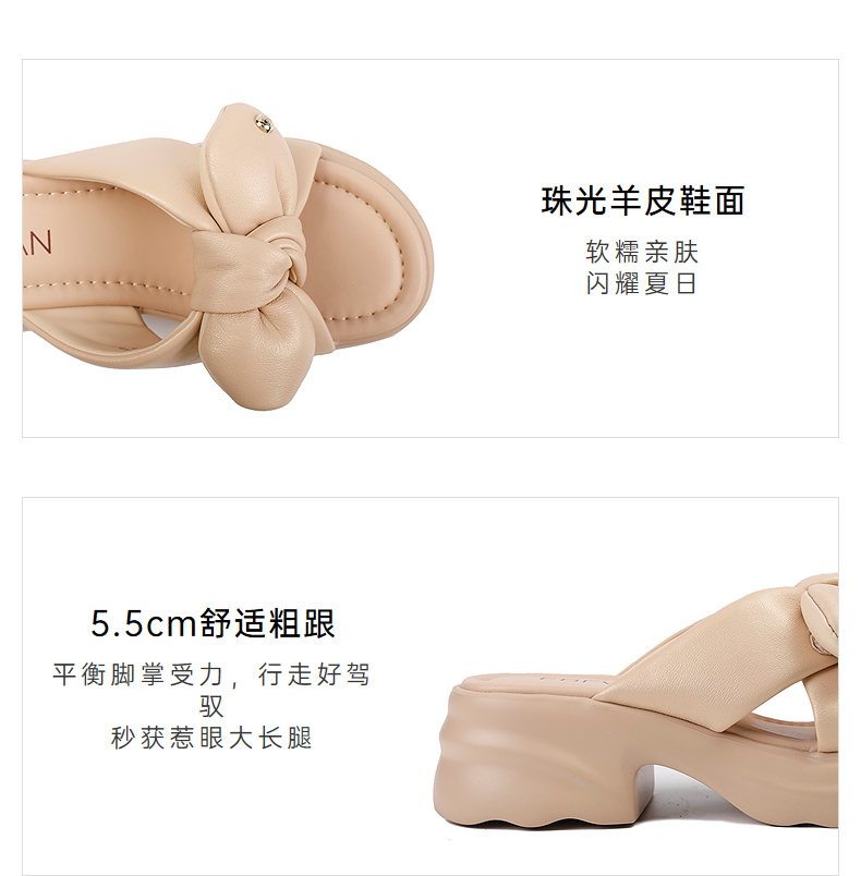 2楼伊伴2025年夏季珠光小奶芙珠光羊皮鞋面凉鞋B25320501